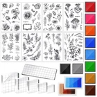26 Pieces Acrylic Stamp Blocks Tools Set Including 8 Plants and Flower Silico...