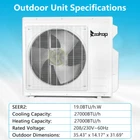listing template VISIT OUR STORE SIGH UP FOR EMAIL 27000 BTU 4-in-1 Tri Zone Ductless Mini Split Air Conditioner Inverter Heat WIFI ZOKOP Tri 3 Zone Ductless Mini Split Air Conditioner Heat Pump System, 19 SEER2 Ductless AC with 3 Indoor Air Handlers, 1 Outdoor Condenser, 25ft Installation Kit (9K+9K+12K) Introductions : ZOKOP smart Split Type Type Inverter Air Conditioners with heating function are made with high quality compressor, high speed pure copper motor & inner spiral copper tube which are powerful to quickly cool down / warm your home, office, garage or apartment for maximum comfort in quiet operation, perfect appliance in hot Summer or cold Winter. Comparing with others, machine featured with high SEER grade, which means that it is more energy efficient and much money saving! This unit also has Sleep, Turbo, ECO, Mute and Timer functions. These functions help you enjoy the true individual comfort. Let the ZOKOP Mini Split Air Conditioner 3-Zone be the solution to your home's heating and cooling needs. Features: [MULTIPLE ROOMS] Comes with 3 indoor air handlers 9,000 BTU +9,000BTU+ 12,000 BTU with separate controller for individual rooms and 1 outdoor condenser. Enjoy individual temperature controls in each room for ideal climate control. This unit provides cooling and heating for up to 1350Sq. Ft (2 indoor unit recommended area 400 Sq. Ft, another one 550 Sq. Ft) and able to work in environments as low as 5 degrees Fahrenheit. 3pcs 24.6ft copper pipes (Standard size 1/4" & 3/8" outer dimension) and 3 installation kits included. The length for drain pipe is 78.7". Featured with Cooling, Heating, Dehumidifying and Fan only modes in one compact unit. It is ideal for using in home's bedroom, living roo, kitchen, office, apartment, garage and so on. [Energy Saving] ZOKOP the speed of the air conditioner equipped with frequency converter directly affects the service efficiency of the air conditioner. The frequency converter is a control system used to control & adjust the speed of the compressor to make it always in the best speed state, so as to improve the energy efficiency ratio (at least 30% more energy-saving than the conventional air conditioner). This 19 SEER2, 9,000 BTU +9,000BTU+ 12,000 BTU,208/230V~60Hz, AHRI Certified AC unit with a heat pump(up to 5℉/-15℃) is featured high quality compressor for more efficient cooling and longer working life; Higher SEER grade & Eco-friendly design which leads you for money saving ( please confirm voltage before making purchase) . [Quiet Cooler & Heater] Ultra Silent at only 27-42 dB(A) and beautifully built adds a touch of elegant charm to your room.In sleeping & mute mode, It's able to maintain the temperature while you are sleeping. And you can use the 24-hour timer in combination to free you from additional worries. Featured with 4-way swing function, unit provides scientific airflow in your room to suit your comforts in just a few minutes.Best choice to decorate your home. [Smart Operation] Operating this conditioner is an easy-understanding and enjoyable cooling experience (61-88degree Fahrenheit ). We can set all functions on remote control (Fan Speed Selection, Sleep Mode, 24 Hour Timer, ECO Mode, Turbo Mode, and Mute Mode). Built-in microprocessor chip & sensor in the remote controller makes it more convenient to operate the air conditioner from a distance. Digital LED display controls offer precise temperature adjustments and the remote control lets you control the air conditioner from across the room. [Washable Air Filter] This indoor AC machine comes with a permanently washable and easy cleaning air filter. Keep your air conditioner running more efficiently by cleaning the filter once a month. Specifications : 3*I ndoo r Unit: 1. Color: White 2. Power Supply: 208/230V, 60Hz 3. Cooling : Rated Capacity: 9000Btu/h, 12000Btu/h Rated SEER2: 19Btu/W.h Rated EER2: 10Btu/W.h 4. Heating: Rated Capacity: 10000Btu/h, 12200Btu/h HSPF2 Rating (Region IV): 8.5Btu/W.h 5. Operation temperature: (16~31)degree Celsius/(61~88)degree Fahrenheit 6. Use the air conditioner in the following temperature conditions: Indoor(cooling/heating): 17 ~32degree Celsius(63 ~90degree Fahrenheit)/0 ~27degree Celsius(32 ~80degree Fahrenheit) Outdoor(cooling/heating): 15 ~55degree Celsius(59 ~131degree Fahrenheit)/-15 ~24degree Celsius(5 ~75 degree Fahrenheit) 7. Moisture removal: 1.1L/h, 6L/h 8. Indoor air circulation/Hi : 600m³/h, 650m³/h 9. Indoor noise level at cooling(Turbo/High/Med./Low/Mute): 42/39/34/29/27dB(A) 10. Application Area: 9000BTU Up to 400 sq.ft, 12000BTU Up to 550 sq.ft 11. Certificate : AHRI, ETL 12. Indoor Dimensions: 81.1x29.2x20.5cm(31.9x11.5x8.1inch) 13. Indoor Package dimensions: 88.5x36.6x27.8cm(34.8x14.4x10.9inch) 14. Indoor Net weight: 9.5kg/20.9Ibs 15. Indoor Gross weight: 12.7kg/28Ibs 1* Outdoor Unit: 1. Cooling Capacity: 27000BTU/h 2. Heating Capacity: 27000BTU/h 3. SEER2: 19.0BTU/h.W 4. Rated Voltage: 208/230V~60Hz 5. Refrigerant type: R410A/2200g/77.6 ozs 6. Outdoor Dimensions: 90x36x80.5cm(35.43x14.17x31.69inch) 7. Outdoor Package dimensions: 102.8×47.5×86.5cm(40.47x18.7x34.06inch) 8. Outdoor Net weight: 56kg/123.5lbs 9. Outdoor Gross weight: 60.5kg/133.4lbs 3*Copper pipes : 1. Connecting Pipe:Gas 3/8''-24.6FT/7.5M Liquid 1/4''-24.6FT/7.5M 2. Signal Cable Length: 24.6FT/7.5M 3. Drain Hose:6.6FT/2M Package Includes : 3* Indoor box includes : 1 x Indoor Unit 1 x Remote Control 1 x Screw Pack 1* Outdoor box includes: 1 x Outdoor Unit 4 x outdoor feet rubber 3*Copper pipes box includes: 1 x Copper pipes set(24.6FT) 1 x Signal Cable(24.6FT/7.5M) 1 x Drain pipe(6.6FT) 1 x Drain pipe adapter 2 x Sealant 2 x Wall sleeve cover 2 x Pipe tape 1 x Insulation pipe 1 x Wall sleeve You might like this more>> Portable Princess Castle Play House Blue Large Kids Play Tent $23.79 Double Shoe Rack Closet Shelf Storage Organizer $19.49 Oil Painting Easel Sketch Box Portable Folding $57.49 FCH L-Shaped Corner Computer Desk Home Office Desk $