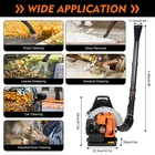 Specifications Material: PP Color: Black, Grey, Orange Style: Modern Assembly Required: Yes Power Source: Gas Powered Installation Type: Freestanding Motor Type: 2-stroke Motor Features: Adjustable Speed Start Method: Manual Start Number of Items: 1 Power: 2.7kW Speed: 6800r/min Displacement: 63CC Fuel Tank: 1.8L/0.47gal Air Volume: 0.3m³/s Fuel Consumption: ≤544g/kW.h Fuel Mixture: 25:1 (#92 Gasoline or Above : 2-stroke Engine Oil) Total Length of Tube: 1.49m/4.9ft Blowing Head Length: 11.2cm/4.4in Oil Inlet Size: 2.8cm/1.1in Product Size: 37.2*33*54cm/14.7*13*21.3in Package Size: 55*34.5*46.3cm/21.7*13.6*18.2in Gross Weight: 10.05kg/22.2lbs Net Weight: 8.95kg/19.7lbs 2700W Modern Leaf Blower Backpack Gas Snow Blower 2-Stroke Engine 63CC 6800r/min Description The fallen leaves in autumn are very attractive, but the subsequent cleaning issues are very troublesome. Use our leaf blower to meet your debris-cleaning needs! Equipped with a high-performance 63CC two-stroke engine, it effortlessly removes leaves and yard debris, allowing you to appreciate the graceful figure of yellow leaves slowly falling down and easily solve the cleaning problem of the yard. It cleverly combines practicality and comfort, making it easy to operate for a long time without feeling tired. Key Features Impressive Efficiency: Its large displacement of 63CC provides a high speed of 6800r/min. Its powerful two-stroke engine (2.7kW) can quickly remove leaves, sand, hard gravel, and snow, improving your work efficiency. Widespread Blowing : The long flame-retardant air outlet supports up and down 120° adjustment, and left and right 135° adjustment, and the hose at the interface also makes it convenient for you to adjust the direction, effectively expanding the cleaning area. Easy to Use: Its switch and accelerator are designed on the same control handle, allowing you to control them with one hand. Besides, it has a constant speed switch that can fix any speed, so you don't have to keep pressing the valve. It is very convenient and effortless to operate. Large Fuel Tank: The 0.47 gal large fuel tank allows you to use the machine for a long time without the hassle of repeatedly adding fuel. The oil bubble and visible fuel delivery pipe also facilitate the process of refueling. Thoughtful Design : With a backpack-style design and adjustable & breathable straps, even if carrying for a long time, you won’t feel tired or stuffy. The thickened backrest can effectively isolate the running heat of the machine from you, and even if used for a long time, it will not cause harm to you. Safety Guard: Air-cooled mode, multiple heat dissipation holes, and one-click shutdown, effectively ensure safety during operation. This product does not contain batteries to avoid the risk of spontaneous combustion, so you can easily store it in storage rooms, warehouses, and other places after use. Outstanding Material: This machine is made of high-quality PP material which has strong heat resistance , corrosion resistance , and impact resistance . It can remain stable in operation even under extreme temperature and humidity conditions, making it an ideal material for such tools. Easy to Carry: Due to its lightweight ( 19.7 lbs ) and top-handle design, the leaf blower can be easily carried to any location for use, saving time and effort. Satisfaction Guarantee: No matter what problem you encounter or have any questions, please contact us. We will reply and solve the problem for you as soon as possible. Details Metal Buckles: The shoulder straps are connected by metal buckles, which are very sturdy and durable. Large Oil Inlet: The large oil inlet ( 1.1in ) can help you quickly complete refueling work. Thick Base: It ensures the blower's stable placement on the ground without tipping, making it easy to store and place when resting. Flat Blowing Head: The flat blowing head produces a concentrated wind ( 0.3m³/s ) that can quickly clean indoors and outdoors. Application It can efficiently handle tasks such as leaf sweeping, lawn cleaning, sand and gravel cleaning, yard snow removal, forest fire protection, welding slag cleaning, and dust removal at construction sites. Specifications Material: PP Color: Black, Grey, Orange Style: Modern Assembly Required: Yes Power Source: Gas Powered Installation Type: Freestanding Motor Type: 2-stroke Motor Features: Adjustable Speed Start Method: Manual Start Number of Items: 1 Power: 2.7kW Speed: 6800r/min Displacement: 63CC Fuel Tank: 1.8L/0.47gal Air Volume: 0.3m³/s Fuel Consumption: ≤544g/kW.h Fuel Mixture: 25:1 (#92 Gasoline or Above : 2-stroke Engine Oil) Total Length of Tube: 1.49m/4.9ft Blowing Head Length: 11.2cm/4.4in Oil Inlet Size: 2.8cm/1.1in Product Size: 37.2*33*54cm/14.7*13*21.3in Package Size: 55*34.5*46.3cm/21.7*13.6*18.2in Gross Weight: 10.05kg/22.2lbs Net Weight: 8.95kg/19.7lbs How to Use Pour in the mixed oil, and press the oil bubble multiple times to expel air, ensuring that there is oil reflux inside the pipe. Cold start: Pull the throttle upwards, and then pull the rope. When there is resistance, you need to close the throttle downwards, and pull the rope again to start. Hot start: Pull the throttle downwards and pull the rope to start. After completing the work, you need to release the accelerator and press the orange button to turn off the machine. Package Included 1* Leaf Blower 1* Fuel Oil Mixing Bottle (Empty) 4* Connecting Tubes 2* Straps 1* English Manual All Accessories for Assembly Notes Please carefully read the manual and strictly follow the precautions to have a better experience. Please note that this product does not include gasoline and you need to purchase #92 gasoline or above on your own. Please allow the slight color difference caused by the shooting light and 1-3cm error due to manual measurement, and make sure you do not mind before ordering. Payment Delivery details Terms of sales About us Contact us Payment We accept ebay payment 。 Fees such as import du