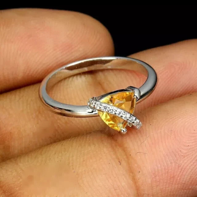 Setting Style: Prong Band Width: As per picture Main Stone Width: As per picture Country/Region of Manufacture: India Metal Purity: 925 Style: Band Customized: Yes Antique: No Signed: No Cut Grade: Excellent Metal: Sterling Silver Shape: Triangle Personalize: Yes Ring Size: All ring size available Gemstone Clarity Grade: Slightly Included Occasion: Anniversary, Birthday, Christmas, Engagement, Graduation, Mother's Day, Valentine's Day, Wedding Sizable: Yes Vintage: No Main Stone Color: Yellow Type: Ring Main Stone: Citrine Handmade: Yes Color: White Main Stone Length: As per picture Seller Warranty: Yes Main Stone Creation: Simulated Brand: karunas-76 Theme: Beauty Main Stone Depth: As per picture Features: Engraved, Nickel-Free Era: Undated Base Metal: Sterling Silver Number of Gemstones: As per picture Secondary Stone: Diamond Main Stone Shape: Trillion Country of Origin: India Material: Gemstone, Stone, Metal Wholesale: Yes
