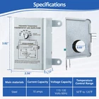 Upgrade Thermostat: the fan off temperature range of this attic fan thermostat controller is 50℉ to 120℉ (10℃ to 48.8℃), you can use it to control power attic ventilators to maximize energy savings and temperature Finger Dial Adjustable Temperature Switch: no need screw driver anymore; This attic fan thermostat control has a finger dial switch with clear arrow indication, making it easier for you to rotate it to adjust the temperature point Wide Application: the thermostat switch can control up to 3 appliances simultaneously within 10 amps of current, you can use this programmable thermostat for greenhouse exhaust fan, attic fan and other exhaust cooling fan system Easy to Install: the home programmable thermostats has a clear wiring diagram right on the box, you can set it up in a few minutes, and no need of any extra professional tool Warm Tips: as the ambient temperature is constantly changing, the temperature of the thermostat by this effect may have some error, the error range is 5-10 degrees Fahrenheit