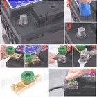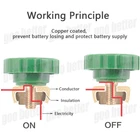 2PCS Car Battery Link Terminal Quick Cut-off Disconnect Master Kill Shut Switch 2PCS Car Battery Link Terminal Quick Cut-off Disconnect Master Kill Shut Switch Feature: - Used for top post terminal, only connected to the battery negative column 15-17mm. - Voltage: 12V, Rated current: 125A. - Easy to install & simple to use. Loose/twist is power off, tightening can be conductive. - Made from zinc alloy copper plating, rust and corrosion-resistant, durably made for safety use. - Prevents battery from draining when storing and repairing cars and trucks - Fits on motorcycle, car, van boat, also electrical equipment switch. - Product Size: 3.3" x 1.5" x 1.5". - Fits all standard round post size batteries Specification: - Material: zinc alloy + brass plated - Color: Gold - Size: 3.3" x 1.5" x 1.5". - Quantity: 2PCS Package Include: 2PCS Battery Master Disconnect Switch