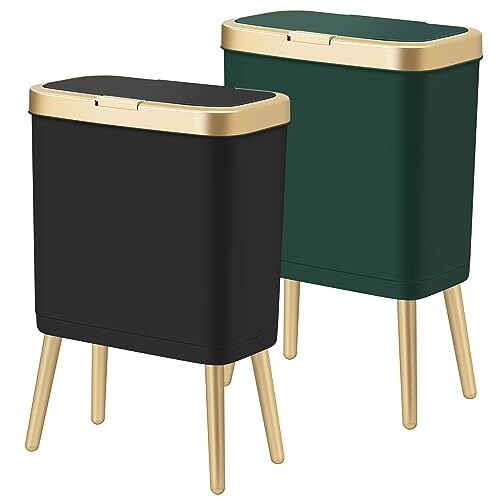 Menu 1. We require immediate payment. 2. We currently accept payment via eBay managed payments only. 3. Once payment is cleared, we will dispatch your shipment within 1-3 business days. Please refer to the "Shipping" tab for more information regarding shipping speed to your destination. 2Pack BathroomTrash Can with Lid, Modern Garbage Bin for Kitchen, 4 Gallon Garbage Can with Gold Edge, Plastic Trash Bin Waste Basket for Bedroom, Living Room,Office(Black+Green) Product description ★【Unique Design】 2 Pack high-legged bathroom trash cans features a narrow design that is perfect for small kitchens or bathrooms. Its unique appearance makes this room trash can with gold edge more attractive than ordinary ones. The stylish and minimalist design of this plastic trash can with lid easily complements any modern decorative style. You can confidently place this covered office trash can wver you decide. ★【Trash Can with Lid】The bathroom trash cans with lids effectively blocks garbage odors, perfectly conceals unsightly trash and maintains your privacy. It also prevents pets from knocking over the trash bin. Inside the living room trash can, t is a black pressure ring. Take it out and place a garbage bag over it to hide the unpleasant bag inside. ★【One-press garbage can with lid & Easy to Use】Just press the key, the lid will automatically pop up, easy to operate.waste basket for bedroom is made up with high quality plastic, sturdy and durable, Bottom heightening design, easy to clean and leave no dirt. ★【4 Gallon-LARGE CAPACITY 】 With a 4-gallon capacity, this white and gold garbage can is perfect for everyday use. It is the ideal size for small families, living room, bathroom or offices. while its 15L large capacity ensures you won't have to empty it constantly.The kitchen trash can with lid has 11.8" wide diameter lid opening, makes throwing even bulky trash easy, quick, and mess-free. ★【100% SATISFACTION GUARANTEED】 At , each garbage bin we sell is inspected carefully and packaged well to ensure that it is the highest quality.If these black trash bins do not meet your expectations, please contact us, We will ensure that customers get the most perfect shopping experience. PLEASE MESSAGE US IF YOU HAVE ANY OTHER QUESTIONS, AND MANY THANKS FOR READING ALL OF THIS. Copyright ©#. All Rights Reserved.