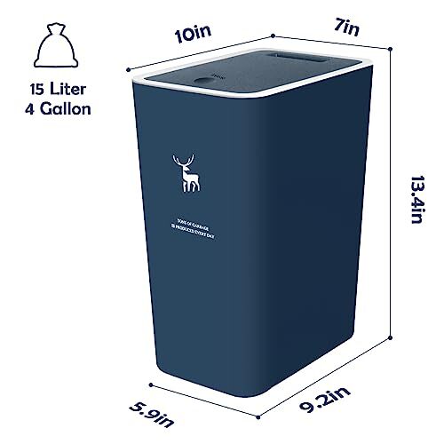 Return Policy Fast Delivery Trusted seller Trash Can with Lid, 2 Pack 4 Gallons/15 Liters Garbage Can with Press Top, Small Trash Can Dog Proof, Plastic Trash Bin, Waste Basket for Bathroom|Kitchen|Bedroom|Office (2, Blue) Product Description 【Press to Open Lid】No more struggling with dirty hands to lift a trash can lid, just simply press the button and throw your garbage inside. 【Isolates Odors】The small trash can's lid and design help to contain and isolate odors, keeping your kitchen or office smelling fresh and clean. 【Prevents Garbage from Spilling】The secure lid ensures that your trash stays w it belongs, preventing any spills or messes. 【Stylish Appearance】This waste basket is not only functional, but its sleek and modern design also adds a stylish touch to any room. 【Easy to Use】Top handle makes it easier to lift the trash can one-handed vs. two-handed. Perfectly conceal the built-in design of the garbage bagr, allowing you to keep your space tidy and hygienic. 【Multiple Uses】Perfect for use in the kitchen, office, bathroom, or anyw else you need a reliable and stylish plastic trash bin. 【Excellent After-Sales Service】erfect after-sales service to provide you with all-round services. If you have any quality problems, please feel free to contact us, and we will reply you within 24 hours. Shipping Returns Payment Shipping Shipping is FREE to all addresses other than APO/PO boxes in the lower 48 states. All our stock ships from US-based warehouses. Shipped via USPS or UPS (depending on location and package weight) Unless stated otherwise, all orders will ship within 24-72 hours of your payment being processed. Check our feedback to see the great reviews of FAST shipping we offer. Returns Seller does not accept returns Payment We currently accept payment via eBay managed payments only. Once payment is cleared, we will dispatch your shipment within 1-3 business days. Please refer to the "Shipping" tab for more information regarding shipping speed to your destination.