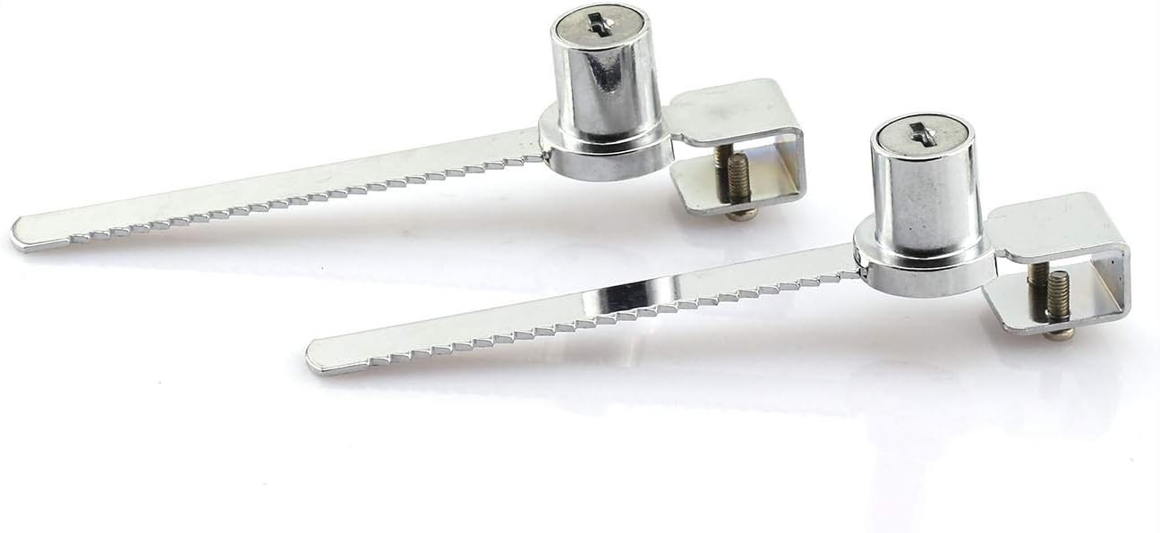 2-Pack Glass Lock Terrarium Showcase Display Case Cabinet Silver, Black Product Details Brand: JCBIZ Special Feature: Key Lock Lock Type: Key Lock Material: Metal, Zinc Recommended Uses For Product: Cabinets Style: Modern Color: Silver, Black Number of Pieces: 2 Controller Type: Hand Control Shape: Square Control Method: App Manufacturer: JCBIZ Part Number: LOCK-328ALIKE-2 Item Weight: 5.6 ounces Package Dimensions: 6.18 x 3.46 x 1.61 inches Item model number: LOCK-328ALIKE-2 Is Discontinued By Manufacturer: No Item Package Quantity: 2 Special Features: Key Lock Batteries Included?: No Batteries Required?: No Brand: JCBIZ Special Feature: Key Lock Lock Type: Key Lock Material: Metal, Zinc Recommended Uses For Product: Cabinets Type: 2pcs Showcase Sliding Glass Door Lock (Each Lock come with 2 keys), Length: 141mm; Max Width: 20mm; Min Width: 11mm; Height: 12mm; Thickness: 1.5mm; Cylinder: 18x18.5mm (DxH) Fine Workmanship: Made of high quality zinc alloy, strengthen and thickened lock head, E-coating processed surface, durable and practical to use. Use: Consist of metal bar, locking barrel (mechanism) and 2 keys. Fits Up to 4-6mm Thick tempered glass. Easy to Install: No drilling required, slide the bar between the panes of glass and fix it in place with screw, then slide the lock barrel onto the bar and ratchet in place. Adjustable screw on back for different thickness of glass. Application: Suitable for most of glass cabinet and show case, good used for Glass Locks, Sliding Glass Door Locks, Showcase Cabinet locks, Cabinet Locks etc. Feature: Type: Sliding Glass Door Lock Model: 328 Universal Key (Keys Alike) Material: Zinc Alloy Length: 141mm Max Width: 20mm Min Width: 11mm Height: 12mm Thickness: 1.5mm Cylinder: 18x18.5mm (DxH) Fine Workmanship: Made of high quality zinc alloy, strengthen and thickened lock head, E-coating processed surface, durable and practical to use. Use: Consist of metal bar, locking barrel (mechanism) and 2 keys. Fits Up to 4-6mm Thick tempered glass. Easy to Install: No drilling required, slide the bar between the panes of glass and fix it in place with screw, then slide the lock barrel onto the bar and ratchet in place. Adjustable screw on back for different thickness of glass. Application: Suitable for most of glass cabinet and show case, good used for Glass Locks, Sliding Glass Door Locks, Showcase Cabinet locks, Cabinet Locks etc. Tip: "Universal Key" Type: For example,you buy a lot of universal type lock, you only need one key can open all the locks. Package Include: 2pcs Showcase Sliding Glass Door Lock(Each Lock come with 2 keys)