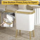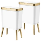 ★【Unique Design】 2 Pack high-legged bathroom trash cans features a narrow design that is perfect for small kitchens or bathrooms. Its unique appearance makes this room trash can with gold edge more attractive than ordinary ones. The stylish and minimalist design of this plastic trash can with lid easily complements any modern decorative style. You can confidently place this covered office trash can wherever you decide. ★【Trash Can with Lid】The bathroom trash cans with lids effectively blocks garbage odors, perfectly conceals unsightly trash and maintains your privacy. It also prevents pets from knocking over the trash bin. Inside the living room trash can, there is a black pressure ring. Take it out and place a garbage bag over it to hide the unpleasant bag inside. ★【One-press garbage can with lid & Easy to Use】Just press the key, the lid will automatically pop up, easy to operate.waste basket for bedroom is made up with high quality plastic, sturdy and durable, Bottom heightening design, easy to clean and leave no dirt. ★【4 Gallon-LARGE CAPACITY 】 With a 4-gallon capacity, this white and gold garbage can is perfect for everyday use. It is the ideal size for small families, living room, bathroom or offices. while its 15L large capacity ensures you won't have to empty it constantly.The kitchen trash can with lid has 11.8" wide diameter lid opening, makes throwing even bulky trash easy, quick, and mess-free. ★【100% SATISFACTION GUARANTEED】 At , each garbage bin we sell is inspected carefully and packaged well to ensure that it is the highest quality.If these white trash bins do not meet your expectations, please contact us, We will ensure that customers get the most perfect shopping experience.