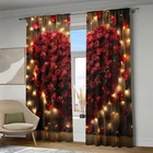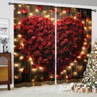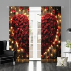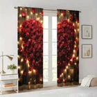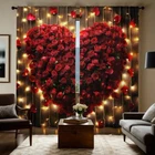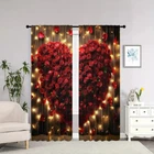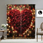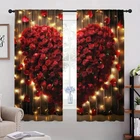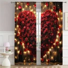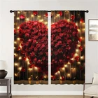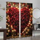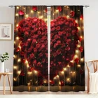 2Pcs Romantic Valentine's Day Window Curtain Drapes Bedroom Living Room Kitchen