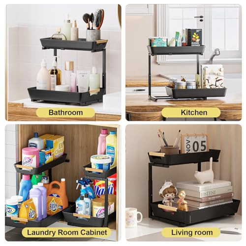Return Policy Fast Delivery Trusted seller Under Sink Organizer,2 Tier Pull Out Adjustable Height Under Cabinet Storage,Under Sink Storage for Kitchen Bathroom Cabinet(2 Pack) Product Description The upper and lower 2 floors under sink organizer is designed as a sliding drawer with handles, can be pulled out from both sides, allowing you to easily access the items stored at the bottom. L-shaped design, narrow at the top and wide at the bottom to allow space for the sewer pipe.Make the most of the space in the kitchen bathroom cabinet. The 3-level height adjustable design is a great design to store under sink organizer. The adjustable maximum space is sufficient to store most tall objects under sink storage for kitchen bathroom cabinet. Installation does not require any tools and can be completed in just a few minutes. This sink organizer is made of stainless steel metal material,and the support tube is reinforced and forged. The coating process makes it water proof and rust proof,increg its service life. This product is not only suitable for organizing under kitchen and bathroom sink cabinets.But also for organizing seasoning racks on kitchen countertop,cleaning supplies in laundry rooms and more. Shipping Returns Payment Shipping Shipping is FREE to all addresses other than APO/PO boxes in the lower 48 states. All our stock ships from US-based warehouses. Shipped via USPS or UPS (depending on location and package weight) Unless stated otherwise, all orders will ship within 24-72 hours of your payment being processed. Check our feedback to see the great reviews of FAST shipping we offer. Returns Seller does not accept returns Payment We currently accept payment via eBay managed payments only. Once payment is cleared, we will dispatch your shipment within 1-3 business days. Please refer to the "Shipping" tab for more information regarding shipping speed to your destination.