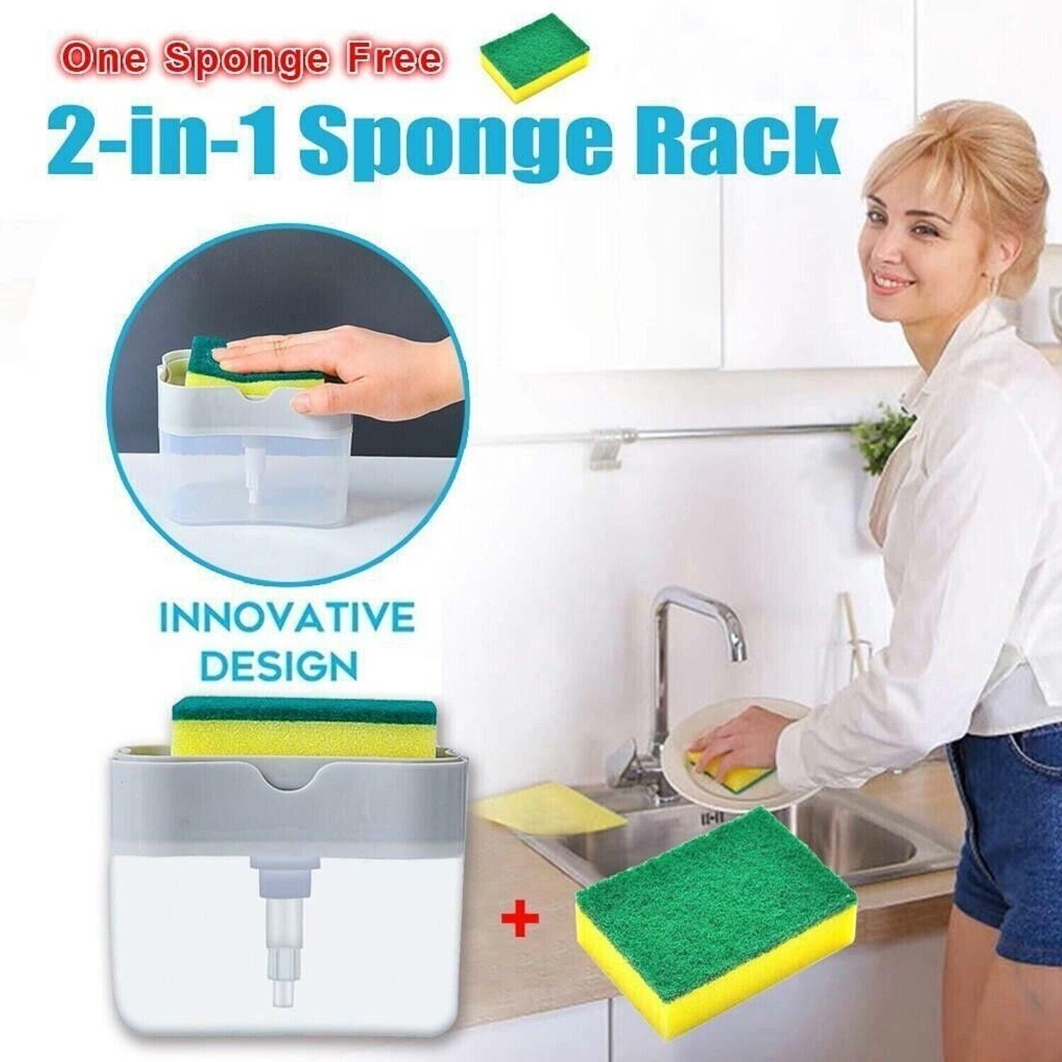 2-in-1 Soap Dispenser and Sponge Caddy for Dishwashing