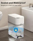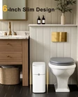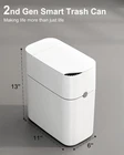 【2nd Gen Automatic Bag Expanding Technology】Goodbye hassle, hello convenience! This automatic bathroom trash can eliminates the frustration of adjusting garbage bags manually. With a built-in fan that expels air between the bag and the can, it optimizes bag usage, transforming your daily routine into a more comfortable and efficient experience. 【Touchless and Gentle Operation】Enjoy a touchless experience with this motion sensor trash can for bathroom use. The lid opens and closes smoothly, allowing for quiet and effortless waste disposal. 【Elegant Home Companion】With refined curves and a classic color scheme, this slim bathroom trash can complements any decor. Its 6-inch profile fits perfectly in tight spaces, while the generous 3-gallon capacity accommodates larger items like shampoo bottles, making it an ideal small trash can with lid. 【Easy to Clean and Odor Control】Crafted from high-quality ABS plastic, this smart automatic trash can bathroom model is easy to clean with just a wipe. The sealed lid effectively traps odors, keeping your living space fresh and inviting. 【Worry-Free Usage】 Insert the batteries, turn on the switch, and secure the garbage bag (avoid blocking the air outlet)—the fan holds it in place for easy use. An instruction manual is included, and our customer service team is here to help with any questions! 【Special Note】This touchless trash can includes a roll of garbage bags, but you will need to provide 4 AA batteries. If the batteries run out, you can still open the lid manually. 【Size】 6" W x 11" L x 13" H