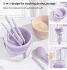2pcs 3in 1 Silicone Makeup Brush Cleaner Bowl With Drying Holder, And Storage