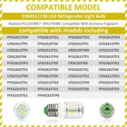 物品状况:全新: A brand-new,unused,unopened,undamaged item in its original paUPC:Does not applyManufacturer Warranty:3 MonthsFeatures:LED LightingFinish:GlassCompatible Brand:Frigidaire, Electrolux, KenmoreMPN:5304511738, PS12364857, AP6278388, 4584444Country/Region of Manufacture:ChinaInstallation:FreestandingMaterial:Glassgtin13:Does not applySet Includes:2pcs LED Refrigerator Light Corn BulbType:LED Refrigerator Light Corn BulbPower Source:ElectricPower:Less than 200 WCompatible Model:Frigidaire, Electrolux, KenmorePersonalize:NoNumber of Items in Set:2Brand:SUMNEWColor:White