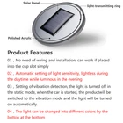 Specification For Round Diameter Of Products (65mm;67mm;69mm;71mm;73mm) (2.56in/2.64in/2.72in/2.80in/2.88in) ,Please check the item size before ordering.Add a note before placing the order or contact the seller.If you don't add any note or contact the seller, the minimal size standard product will be shipped. Led Color:Switchable Color;Red,Blue,Green,Yellow,White,Ice Blue,Pink; Material:Acrylic;Battery:Built-in 3.7V 240mAh battery;Charge Time:About 3h by Solar;About 1h by USB cable (not included); No need of wiring and installation, can work if placed into the cup slot simply;Automatic setting of light sensitivity, lightless during the daytime while luminous in the evening;Setting of vibration detection, the light is turned off in the static mode, when the car is started, the productwill be switched to the vibration mode and the light will be turned on automatically;The light can be changed into different colors by the button at the bottom. Solar Charging + USB Charging:With solar panels,it can absorb solar power,change it to energy and store up automatically during the day;Built-in Physical lithium battery,it can be manually charged by USB; Our LED car cup holder supports solar energy charging. During the day, it will absorb the sunlight and charge itself, but it won't emit light. In the evening, its light will be turned on when you drive the car. When you leave the car, its light will be off automatically saving energy. Before Installation: looks ordinary and mediocre. After Installation: brought up a notch instantly, personalized and classy. Colorful Car Cup Holder Mat You can change the light color manually (not automatically) by a switch at the bottom of the cup holder. The product supports seven colors - Red, Blue, Green, Yellow, White, Ice Blue, Pink. Changing color at times gives you a feeling of freshness. Product Features 1. A light-sensitive chip is embedded into the product. It can sense the daylight so that the light can be turned on in the evening while automatically turned off during the day. 2. The product contains a vibration-sensitive device. When the car is shut off and the driver leaves, the light will stay on for 20 seconds and then enter the standby mode. 3. Both the startup and the light color changing are easily conducted by the switches at the bottom of the product. 4. The product is mainly charged by solar energy. Besides, it also supports charging by a USB cable. The charging port is placed on the edge of the product. Its interface is Micro USB, the same as ordinary Android phones’ interface. The cable will be provided as the accessory. Package Including 2PCS LED CAR CUP HOLDER & 1 USB CABLE Shipping & Handing All items will be checked before packing. All items are new and of high quality. Item will be shipped within 3 business days upon receipt of cleared payment, excluding weekends and public holidays. We ship worldwide from China.