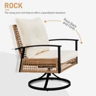 Introductions: Transform your outdoor space into a cozy retreat with our 3-Piece Outdoor Swivel Rocker Patio Set. This stylish bistro set includes two swivel rocking chairs and a matching coffee table, perfect for relaxing on your porch, backyard, or poolside. The chairs feature a unique 360-degree swivel and gentle rocking motion, offering both convenience and comfort. Enhanced with thick, plush cushions, this set ensures a luxurious seating experience while the durable, weather-resistant construction guarantees long-lasting use. Whether you're enjoying a morning coffee or hosting friends, this patio set is designed to elevate your outdoor living. Features: 1. 360° Swivel & Smooth Rocking Motion: Enjoy effortless movement with the 360° swivel base and gentle rocking feature. Perfect for relaxed conversations, lounging, and unwinding in any outdoor space. 2. Ultra-Comfortable Cushions: Sink into comfort with thick, oversized cushions that provide excellent support for your back and seat. Ideal for hours of outdoor relaxation, the cushions are designed to relieve fatigue and ensure comfort. 3. Durable, Weather-Resistant Construction: Built to last, the sturdy galvanized steel frame is rust and fade-resistant, making this set perfect for year-round outdoor use, no matter the weather. 4. Hassle-Free Assembly & Easy Maintenance: Assembly is a breeze with included hardware and clear instructions. Plus, the cushion covers feature zippers for easy removal and machine washing, while the smooth frame is simple to wipe clean. 5. Versatile & Stylish Outdoor Seating: This elegant bistro set is the perfect addition to your backyard, patio, or poolside. With a sleek design and durable build, it blends seamlessly with any outdoor decor, offering both style and functionality. Specifications: 1. Material: Iron, wicker 2. Color: Yellow 3. Chair Dimensions: (25 x 22 x 32.1) in / (63.5 x 56 x 81.5) cm 4. Table Dimensions: (17.5 x 17.5 x 18.3) in / (44.5 x 44.5 x 46.5) cm 5. Net Weight: 65 lbs / 29.5 kg Package Includes: 2 x Swivel Rocking Chairs 1 x Coffee Table 1 x Hardware Assembly Kit 1 x Instruction Manual