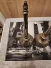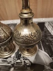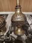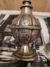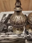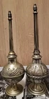 This vintage perfume bottle or rosewater sprinkler is a beautiful addition to any collection. Made of silver and standing at 9.5 inches tall, it is an impressive piece that will surely catch the eye. Its origins can be traced back to the Islamic/Middle Eastern region, making it an antique item that is both unique and rich in history. The bottle is made of base metal and is a vintage original product. It is perfect for those who appreciate the beauty of antique Asian/Oriental items. This perfume bottle/rosewater sprinkler is a must-have for anyone who wants to add a touch of elegance and sophistication to their collection.