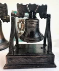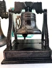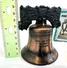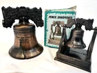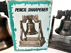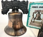 Mini 3 inch bronze replica of the Liberty Bell that rings +2 1/2 inch diecast, Liberty Bell pencil sharpener. New never used comes with original box. Pencil sharpener also moves and rings.