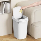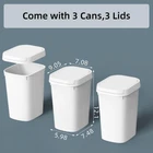Good price and Thoughtfully sized : Our trash can set comes in 3 as a bundle which should be the perfect amount for household use. Measures 9.05"(L) x 7.08" (D)x 12.1"(H); 2.6 Gallon/10 Liter Capacity.The slim design makes them very suitable for placement under sinks, desks, and cabinets. Slim & Compact design: This rectangular small trash can with a modern slim design that looks great and easily fits into narrow openings and small spaces. Fits well in bathrooms, bedrooms, offices or wherever space is limited. Pop-up design lid: The small trash can is design with a pop-up design lid, just need simply tap the button to open or closed the lid, making disposal a breeze. The lid itself is removable, making it easy to rinse out or put a liner bag inside. KEEP YOUR SPACE FRESH- This small trash can with lid works great, providing a secure barrier to keep pets out of the trash and traps smell inside, ensuring your space always smells fresh and clean. EASY TO CLEAN- rafted from premium-grade ABS material, this small trash can with lid boasts high durability and resistance to wear and tear. The stylish matte finish not only adds a touch of elegance but also makes cleaning a hassle-free task.