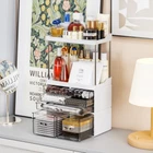 【3-Pack, 6-Drawer Large Capacity】Size 11.1"L x 6.6"W x 19.1"H,This bathroom storage counter is divided into 3 separate sections,The drawers can be stacked for use, and the top can serve as the Vanity Tray,The internal height of 8.4 inches is suitable for almost all beauty product bottles 【Versatile Storage for Any Space】The bathroom counter organizer has a stackable and detachable design, meeting diverse storage needs. Whether placed on a vanity, desk, or Bedroom bathroom sink countertop, it maximizes space utilization and creates a tidy and orderly environment. 【Large Capacity Skincare Organizer】Designed with 6 drawers, this vanity organizer can hold an extensive array of beauty essentials, including Makeup Palettes, Eye Shadows, Jewelry,Face Product, Skin Care Products, Cosmetics,Hair Product,Perfume,Skin Care Products, Cosmetics, and makeup skincare organizer 【Multi purpose storage】to flexibly fit into your dresser,Bathroom,Bedroom,living room,or wherever you fancy, catering to your multipurpose storage needs,as a skincare stand,vanity shelf,face product organizer,counter top makeup organizers,makeup shelf organizer 【Easy Installation and Cleaning】 This countertop makeup organizer is robust without feeling clunky, crafted with sturdy acrylic material and metal tubes. Assembly is the laziest no-brainer – no tools required. Just insert the tubes, and that's all it takes,it's easy to wash and won't play host to stubborn lotion and cream stains 【Perfect Gift to Every Your Life】You're beautiful as you are. Beauty isn't something to seek - It lies within. So is this bedroom dresser organizers - transparency and White mix to redefine sophistication and luxury, where every glance is met with awe, and every touch resonates with the poetry of opulence