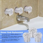 3 Piece Hot Cold and Diverter Shower Faucet Handle Replacement Compatible with Price/Pfister Marquis Tub and Shower Faucets  . Specifications: Color: clear Materials: acrylic Style: vintage Shape: round Handle Type: Shower knob  . Features: Update your bathroom tub and shower faucet handle with this clear acrylic shower faucet handle replacement that complements your tub and shower decor. Replacing your leaky, worn shower knobs helps to restore the faucet to fresh new condition. The shower handle replacement can be installed in minutes using the included screws and index buttons. Compatible with Pfister Marquis tub shower faucets.  . Package includes: 1x Hot side shower faucet handle 1x Cold side shower faucet handle 1x Diverter shower faucet handle 3x Chrome index button and handle screw  . Note: Please check stem and old handle dimensions before ordering, the tip of the stem should have a 12 point broach for proper fit to the handle. Faucet Knob Replacement: the shower faucet handle replacement is compatible with Price Pfister Marquis tub and shower faucets; Please check stem and old handle dimensions before ordering, the tip of the stem should have a 12 point broach for proper fit to the handle Complement Your Bathroom Decor: featuring a clear acrylic finish and a vintage, elegant design, the shower knob replacement can easily match most type of bathroom design and give your bathroom a fresh new look Works Just As Well As Your Old Handle: the round ribbed shaped design makes these hot and cold shower faucet handle replacements easy to grip and rotate Long Lasting Performance: made of quality acrylic material that prevents corrosion and rust, the shower handle replacement can withstand hot and cold water temperatures for longer life and easier use Easy to Install: this 3 piece set of hot, cold and diverter shower handle replacements comes with index buttons and screws for easy installation