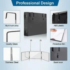 Return Policy Fast Delivery Trusted seller 3 Way Trifold Haircut Mirror, 360 Degree Mirror for Hair Cutting, Shaving, Grooming, Hair Styling, Dye Hair and Makeup with Adjustable Height Brackets, Portable for Travel, Bedrooms, Bathroom (Black) Product Description 360 Degree View: The 3 panel trifold mirror provides a 360 degree view to eliminate blind spots and allows you to comfortably see all angles of your head for haircutting, shaving, dyeing, styling, and makeup application. Durable Design: The mirror is made with reinforced hinges and crystal clear glass for a sturdy and long-lasting product. Lightweight and Portable: The mirror is lightweight and compact, making it easy to carry for travel or use in your home or bedroom. Safe and Easy to Carry: The mirror can be hung on a door or window and easily fits into your suitcase for convenient travel. Ideal Gift: The mirror makes a great gift for anyone in your life, perfect for birthdays, holidays, and special occasions. Shipping Returns Payment Shipping Shipping is FREE to all addresses other than APO/PO boxes in the lower 48 states. All our stock ships from US-based warehouses. Shipped via USPS or UPS (depending on location and package weight) Unless stated otherwise, all orders will ship within 24-72 hours of your payment being processed. Check our feedback to see the great reviews of FAST shipping we offer. Returns Seller does not accept returns Payment We currently accept payment via eBay managed payments only. Once payment is cleared, we will dispatch your shipment within 1-3 business days. Please refer to the "Shipping" tab for more information regarding shipping speed to your destination.