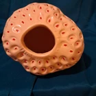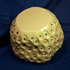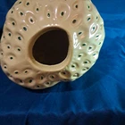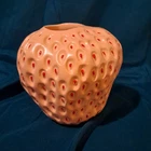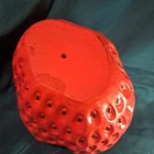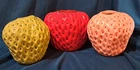 Set of three strawberry planters or vases. They are green, pink and red. I only ever used the red one, I had a small potted succulent setting in it so it has been used for just a short time, actually I think I only have had them about a year. Other than that they are great. The green and pink ones measures 5" tall by 5" wide at the widest part, the red one is 6" tall by 6" wide. These are made from a resin material.