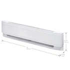 Revolutionary design provides a sleek, compact heater profile, while improving heater performance, decreasing heat loss, and improving comfort. HEAT: Up to 40% faster through top heat discharge, speeding dispersal of warm air into the center of the room SLEEK: Designed with a superior shark-fin blade design on a steel tubular element for improved heat transfer, quiet operation and longer life DISCREET: With our heater being up to 42% smaller than conventional baseboards, this allows for discreet styling, reduced length and added versatility of placement when designing a room SAFE: Design with a full length automatic overheat shutoff for safety and peace of mind DURABLE: Made with polyester/ epoxy coating to resist fading and abrasion and a nickel chromium element that is totally enclosed within a steel sheath, providing superior life expectancy and resistance to rust.