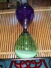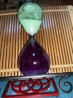 This 30-minute sand timer is a stylish addition to any modern kitchen. With a beautiful blue and green color scheme, this hourglass/sand timer is made of high-quality glass and features a unique sand timer design. Measuring 9 inches in height and 3.5 inches in diameter, this timer is perfect for timing sandwiches, pasta, and other foods. The simple, streamlined design adds a touch of elegance to this modern timer. Its features include a sand timer that is easy to use and a durable construction that will last for years to come. This timer is perfect for anyone who wants to add a touch of sophistication to their kitchen decor. This item is in good used condition. The timer does show signs of wear but it does not take away from the beauty of the piece. Please see the attached photos as they depict the exact item being sold. 29