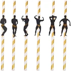 30 Pcs Disposable Paper Straws 7.7-inch Bachelorette Party Decor Fun Long Drinking Straws Tumbler Straws Bachelor Party Supplies (Golden - Streak)