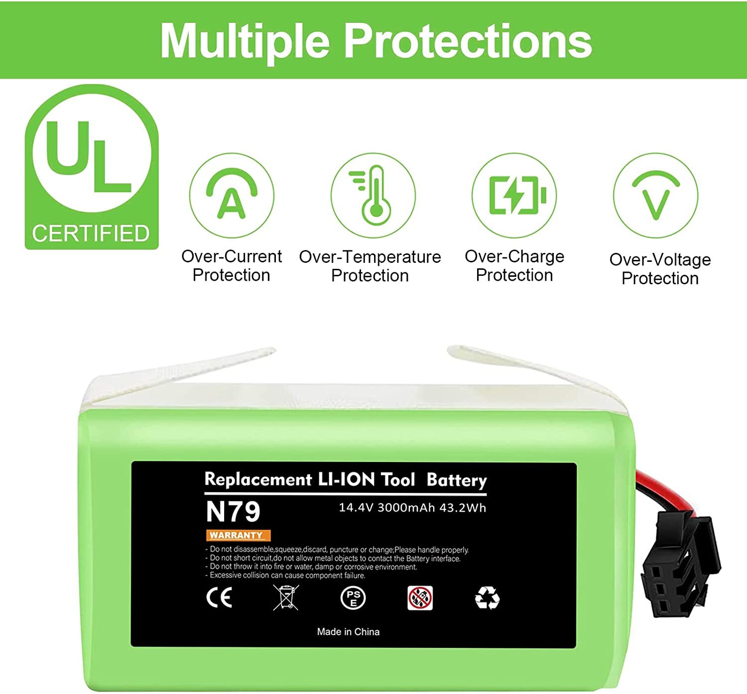 Product Description About this item Lithium-ion 🌳【Battery Type】Battery type: Li-ion battery,Voltage: 14.4V, Capacity: Upgraded 3000mAh(No Fake High Label Capacity). No memory effect, no pollution, and low self-discharge, can be charged or discharged as needed without loss of capacity. 100% compatible with original charger. 🌳【Compatibility】Compatible with Ecovacs Deebot N79S, Deebot N79, Deebot DN622, Eufy RoboVac 11, RoboVac 11S, RoboVac 11S MAX, RoboVac 12, RoboVac 15T, RoboVac 15C, RoboVac 15C MAX, RoboVac 30, RoboVac 30 MAX, RoboVac 30C, RoboVac 35C, G10 Hybrid, G30, G30 Edge, G30 Hybrid, G30 Verge. See more compatible model in description. 🌳【600+ Recharge Cycles】POWTREE 3.0Ah Ecovcas battery replacement can be recharged up to 600+ cycles of use. No memory effect, low self-discharge rate and long-lasting battery life 🌳【High Quality】Battery uses the highest quality cells, safe with rapid-charge technology while providing overcharge and over discharge multiple protection to increase the life of the battery. Reliable safeguard features with the protection for short-circuit, output over-voltage, over-heat and output over-current. Perfect Battery Management System, high-end protection IC. Power Battery to support max. 8A discharge. Compatible with Ecovacs N79S, 500, N79, N79SE, N79W, DN622, DN622.11 Robot Vacuum Cleaners. 14.4V 3000mAh Li-ion rechargeable replacement battery makes vacuum lasting around 100 minutes per charge. Easy to install, local sale support, 24/7 response to online messages, 12 months warranty. Futures : 3000mAh High Capacity Battery Li-ion Rechargeable battery, convenient to use. And it has no memory effect. Can be charged or discharged as needed without loss of capacity. Same size & function as original battery, don't worry damaging your robot. Quick charge and easy to install. ISO9001, RoHS, and CE certified NO FAKE HIGH "LABEL" CAPACITY High Performance Li-ion Battery with 600+ Recharge Cycles With 3000mAh capacity, the battery can last 120-180 minutes after being fully charged (Depending on use & setting), like the original. Built-in multiple protections against overload, overvoltage, overcurrent, short circuit and internal overheating, ensure effective and safe cleaning in your home. Imported high density lithium battery, higher cost, better performance, more durable(can be recharged 600+ cycles) Compatible With:(use"Ctrl+F" to find your own PN & Model) Compatible for Deebot Series: Ecovacs Deebot N79, Deebot N79S, Deebot 600, Deebot 601, Deebot DN622, Deebot 661 Compatible for RoboVac Series:Eufy RoboVac 11 (T2102), RoboVac 11S (T2108), 11S MAX (T2126), RoboVac 12, 15T, 15C (T2120), 15C MAX, 25C Max, 30, 30C, 30 MAX, 35C, G10 Hybrid, G30, G30 Edge, G30 Hybrid, G30 Verge Compatible for :for Conga 990, Tesvor x500 NOT Compatible with: NOT for Eufy RoboVac 11+, iLife A4/A4S/A4S pro/A6/A9/V7/V7S/V7S pro Compatible Models For Eufy RoboVac 11, RoboVac 11S, RoboVac 11S MAX For Eufy RoboVac 12, RoboVac 15C, RoboVac 15C MAX, RoboVac 15T For Eufy RoboVac 30, RoboVac 30C, RoboVac 30 MAX, RoboVac 35C For Ecovacs Deebot N79,Ecovacs Deebot N79S,Ecovacs Deebot DN622 Ecovacs Deebot N79, Deebot N79S, Deebot DN622, Deebot DN621, Eufy RoboVac 11, RoboVac 11S, RoboVac 11S MAX, RoboVac 15T, RoboVac 30, RoboVac 30C Max, RoboVac 15C, RoboVac 15C MAX, RoboVac 12, RoboVac 35C. For Eufy RoboVac 11, RoboVac 11S, RoboVac 11S MAX For Eufy RoboVac 12, RoboVac 15C, RoboVac 15C MAX, RoboVac 15T For Eufy RoboVac 30, RoboVac 30C, RoboVac 30 MAX, RoboVac 35C For Ecovacs Deebot N79,Ecovacs Deebot N79S,Ecovacs Deebot DN622 For Eufy RoboVac 11, RoboVac 11S, RoboVac 11S MAX For Eufy RoboVac 12, RoboVac 15C, RoboVac 15C MAX, RoboVac 15T For Eufy RoboVac 30, RoboVac 30C, RoboVac 30 MAX, RoboVac 35C For Ecovacs Deebot N79S, 500, N79, N79SE, N79W, DN622, DN622 About Us Welcome to our store! We are a professional worldwide wholesale company. High product quality, reasonable prices, excellent customer service and a reliable credit standing is our tenet.If you like our products, please add my eBay shop to your "My Favorites" list. All the products we are selling include factory warranty , don’t cover items that have been abused, burned and damaged in any form. Payment We accpet payment via PayPal , E-wallet , some Credit Card , Direct Debit and Other specific payment methods. Import duties,taxes and charge are not included in the item's price or shipping cost.These charges are the buyer's responsibility. Please check with your country's customs office to determine what these additional costs will be prior to bidding or buying. Insurance is included in the Shipping & Handling costs paid. Shipping Items are generally shipped out in 1-3 business day after your payment has been cleared (Sat. & Sun. excluded.) Orders from the United States Warehouse will be shipped out via USPS or UPS. The shipment usually takes 3-7 business days(Saturday and Sunday excluded), if you need the item urgently, please contact us for detail before purchasing. Local pick up is not available. Orders from China will be shipped via Belgian Post or Post NL.The shipment will take 15-35 working days,please contact us if you didn't get the parcel for a long time. We do not ship to APO, FPO, Alaska, Hawaii and Puerto Rico addresses, and we are unable to ship to PO BOX for this item. Please provide your psychical address. Returns You have 60 days to return it from the date it was received. All returned items must be in the original package and you must provide us with the shipping tracking number,specific reason for the return and your ebay ID. We will refund your full winning bid amount , upon receipt of the item in its original condition and package with all components and accessories included. Contact Us Dear buyers,we appreciate your business, if you are satisfied with our service , please leave us a Positive feedback and rate the details of the transaction (Detailed Seller Ratings) with a " Pefect Stars ". We