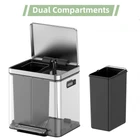 **Product Features:** - **Hands-Free Kitchen Step Trash Can:** Enjoy the convenience of a hands-free operation with the step foot pedal, allowing you to dispose of waste without touching the can. - **Metal Lid & Step Foot Pedal:** The sturdy metal lid and step foot pedal ensure durability and ease of use, providing a seamless experience every time. - **Double Compartment Classified Rubbish Bin With Removable Inner Bucket:** The dual compartments, each with a 15L capacity, make it simple to separate trash and recycling. The removable inner buckets allow for easy cleaning and emptying. **Product Details:** - **Durable and Long-lasting:** Crafted from high-quality stainless steel, this kitchen garbage can is built to withstand daily use. It resists scratches, dents, and other wear and tear, ensuring it remains a long-lasting addition to your home. - **Dual Compartments:** The 2 inner buckets are perfect for separating waste and recycling, keeping your kitchen tidy and organized. - **Convenient and Practical:** The foot pedal and soft-close lid make this garbage can both convenient and practical. Dispose of your waste effortlessly while the soft-close lid contains odors and mess. - **Easy to Clean and Maintain:** The smooth stainless steel finish makes cleaning a breeze. Simply wipe it down with a damp cloth to keep it looking as good as new. The inner buckets can be easily removed for thorough cleaning and emptying. - **Versatile:** This garbage can is not only ideal for the kitchen but also suitable for bedrooms, living rooms, offices, hotels, and even outdoor spaces like patios, decks, and gardens. Hands-Free Convenience: Enjoy a hands-free experience with the step trash can. Equipped with a step foot pedal to dispose waste without ever having to touch the lid. Perfect for busy kitchens and households. Sturdy Metal Lid: This stainless steel kitchen trash can comes with a sturdy metal lid, ensuring durability and a sleek, modern look. The silver finish adds a touch of elegance to any kitchen or bathroom space. Dual Compartments: Stay organized with our double garbage cans for kitchen. The dual compartments allow you to separate trash and recyclables effortlessly, making it a versatile addition to any home. Removable Inner Buckets: Cleaning is a breeze with the removable inner buckets. Simply lift out each compartment to empty and clean, ensuring your silver trash can with metal lid stays pristine. High-Quality Stainless Steel: Crafted from premium stainless steel, this step trash can is built to withstand daily use. The stainless steel construction resists scratches, dents and wear, ensuring your trash can looks great for years to come.
