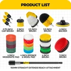 30Piece Drill Cleaning Attachment Set(Brush&Scouring Pads&Scrub Sponge), Includes:11piece of different purpose drill power scrubber brushes, 12 Piece different stiffiness Scouring pads,1 piece white wool pads, 4 Piece scrub sponge with 4 inch backer and 1 piece Extended Reach Attachment. 5 Different Stiffiness Nylon Bristle: (White Bristle:Soft,Yellow and Green Bristle: Medium, Red Bristle: Stiff,Black Bristle: Hardest) :clean your bathtub, grout, upholstery, bathroom surface, floor, tile, shower, toilet and carpet etc, Nylon bristles will not scratch surfaces of them. 12Piece Scouring Pads: perfect for kitchen cleaning oven stove cooktop sink cast iron skillet frying pan pots and pans . The green pads are a bit stiffer and thicker than the red ones. 4 Piece Sponge Polishing Pads and 1 Piece White Wool Buffer Pads:Used for all kinds of coat paints's waxing, polishing and sealing glaze, to clean and improve their lightness; And for auto car detail polishing. Professional wool and foam pad buffing, polishing and finishing system. Efficient cutting and polishing the most difficult car oxidation coating, scratches (DRILL IS NOT INCLUDED)