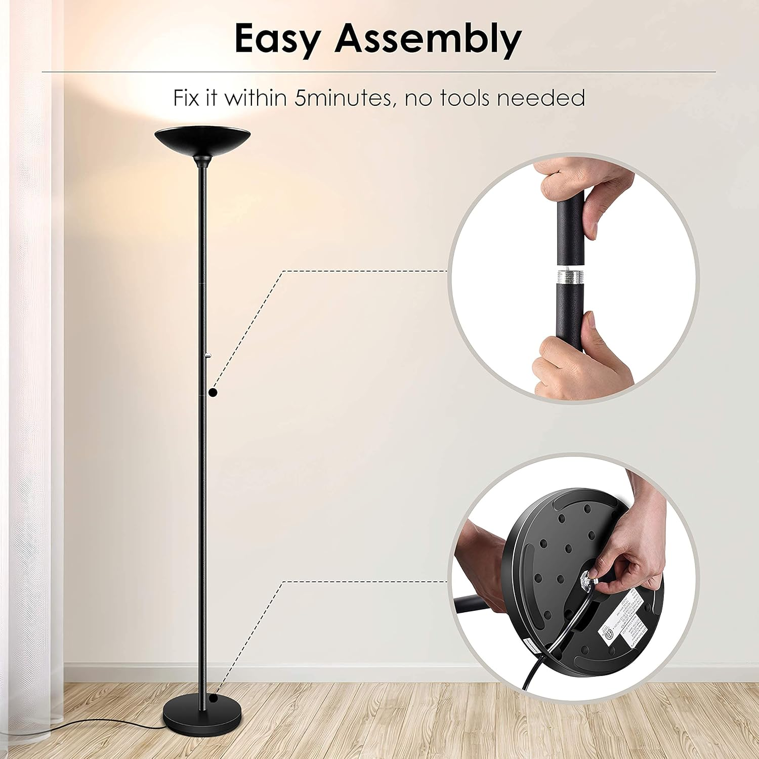 Store New Arrivals Add to Favorite View Feedback Contact Torchiere Floor Lamp, 30W Super Bright LED Standing Lamp, Stepless Dimmable Pole Lamp with 3000K Lighting, Rotary Switch, 70 Inch Tall Metal Modern Floor Lamps for Living Room/Bedroom Black Description Item model number HD005BYH Light Source Type LED Style Modern Number of Items 1 Power Source Corded Electric Number of Light Sources 1 Control Method Remote Switch Type Rotary Batteries Included? No Lighting Method Uplight Mounting Type Pole Mount Lamp Type Floor Lamp Number of Pieces 1 Room Type Living Room, Bedroom Efficiency Energy-efficient Product Dimensions 11"D x 11"W x 70.5"H Material Metal Installation Type Freestanding Finish Type Painted Indoor/Outdoor Usage Indoor Brightness 3600 Lumen Water Resistance Level Water Resistant Batteries Required? No Item Weight 10.41 Pounds Connectivity Technology USB Special Features Dimmable Special Feature Dimmable Shade Height 6E+1 Inches Part Number HD005BYH Shade Color black Color Temperature 3000 Kelvin Color Black Torchiere Floor Lamp Wattage 30 watts Is Cordless? No Base Material Metal Is Waterproof False Shape Straight Voltage 120 Volts Recommended Uses For Product Living Room, Bedroom, Office Shade Material Metal Finish types Painted Included Components Bulb Size Medium 3000K Stepless Dimming; Turn on/off, adjust brightness, all the operations can be achieved by a rotary switch; The dimmable floor lamp can emit up to 3600LM and 3000K natural daylight, which is bright enough for a regular living room; You can choose the proper brightness for scenarios; Bright light for the working or reading, dim mood light for preparing a romantic dinner for your loved one; Besides, the standing lamps will remember and return to your last light setting when you turn on again Long Lifespan with Energy-Saving LED Light; BoostArea producing sustainable products to practice our social responsibility; All our floor lamps adopt LED beads which are known for their high efficiency, low power consumption, and environment friendly; With 30W watts and 3600 Lumens(equals to a 250W Incandescent lamp), this led floor lamp costs 90% less than incandescent lamps cost; This standing lamp will save you electricity bills as well as money and time for maintenance Metal Material and Safe; From the lampshade to the base, this led floor lamp is made of premium metal; Simply designed, but sturdy and practical; With a heavy base, this torchiere floor lamp stands steadily and won't tip over easily; The metal lampshade is also a touch of modern industrial style designed; And you don't have to worry about the overheating problem since this torchiere floor lamp adopts a led bulb that will stay cold Easy Assembly; Thanks to our designer years' work of improving the structure, we make the assembly easy than ever; Without tools required, you just need to screw all the parts of the lamp pole together to finish the assembly of this torchiere floor lamp; PS. The instruction is included in the package and the assembly video is attached to the product page Compatible with smart devices; You can plug this floor lamp in the smart plug (not included), or connect it to a wall switch (not included); Add the floor lamp to your home appliances group, and easily controlled it by your phone; This dimmable floor lamp also compatible with a LED dimmer switch, intelligent design help you enjoy easier life and home automation Product Description BoostArea dimmable LED floor lamp We offers energy-saving life styles, one small step to protect the planet; The 30W LED bulb can provde 3,600 lumens, last up to 5,0000 hours, 5x longer than traditional light bulbs 3000K Natural Light The dimmable floor lamp can emit up to 2400LM and 3000K natural daylight, which is bright enough for a regular living room; 3000K natural light, no burden for your eyes Stepless Dimming BoostArea dimmable floor lamp has a stepless brightness choice; You can choose the proper brightness for any scenarios; Bright light for the working or reading, dim mood light for preparing a romantic dinner for your loved one BoostArea Focus on Every Detail BoostArea torchiere floor lamp provides an advanced texture and we focus on every detail; Weighted base, Slender pole, and dome shape lampshade; It's all made of premium quality metal; The advance texture is also shown on the rotary switch and every connection; We believe that details make us different Choose BoostArea floor lamp, Create an unusual lifestyle in the usual life With its dimmable setting and minimalist style, BoostArea floor lamps can surprisingly fit all your rooms decor, suit for a variety of scenarios; Turn On the lamp for your exclusive time, Turn On the lamp for the romantic time with your loved one, Turn On the lamp for every wonderful night ABOUT US We offer the best prices around on high quality products. Our E-store includes media such as books, movies, music and games while offering electronics, toys, sporting apparel, clothing, tools, general home, garden items and more. SHIPPING We are always working hard to ensure your package arrives as soon as possible. Please understand that some factors like weather, high postal traffic, and the performance of shipping companies are outside of our control. We offer free shipping to the lower 48 states and ship within 2 business days of payment, usually sooner. We do not accept P.O. Boxes. Please provide a physical address. For shipping outside of the continental USA, we only use eBay's Global Shipping Program.The item is shipped to KY and then sent to the rest of the world. International customers are responsible for all duties and taxes. Continue to check out in order to calculate costs for shipping the item to your country. Messages regarding eBay's Global Shipping Program MUST be directed at eBay EXCLUSIVELY. RETURNS We offer a 30-Day Return Policy on items which you are not completely satisfied with. You have the option for a full-refund or an exchange of the item. No re