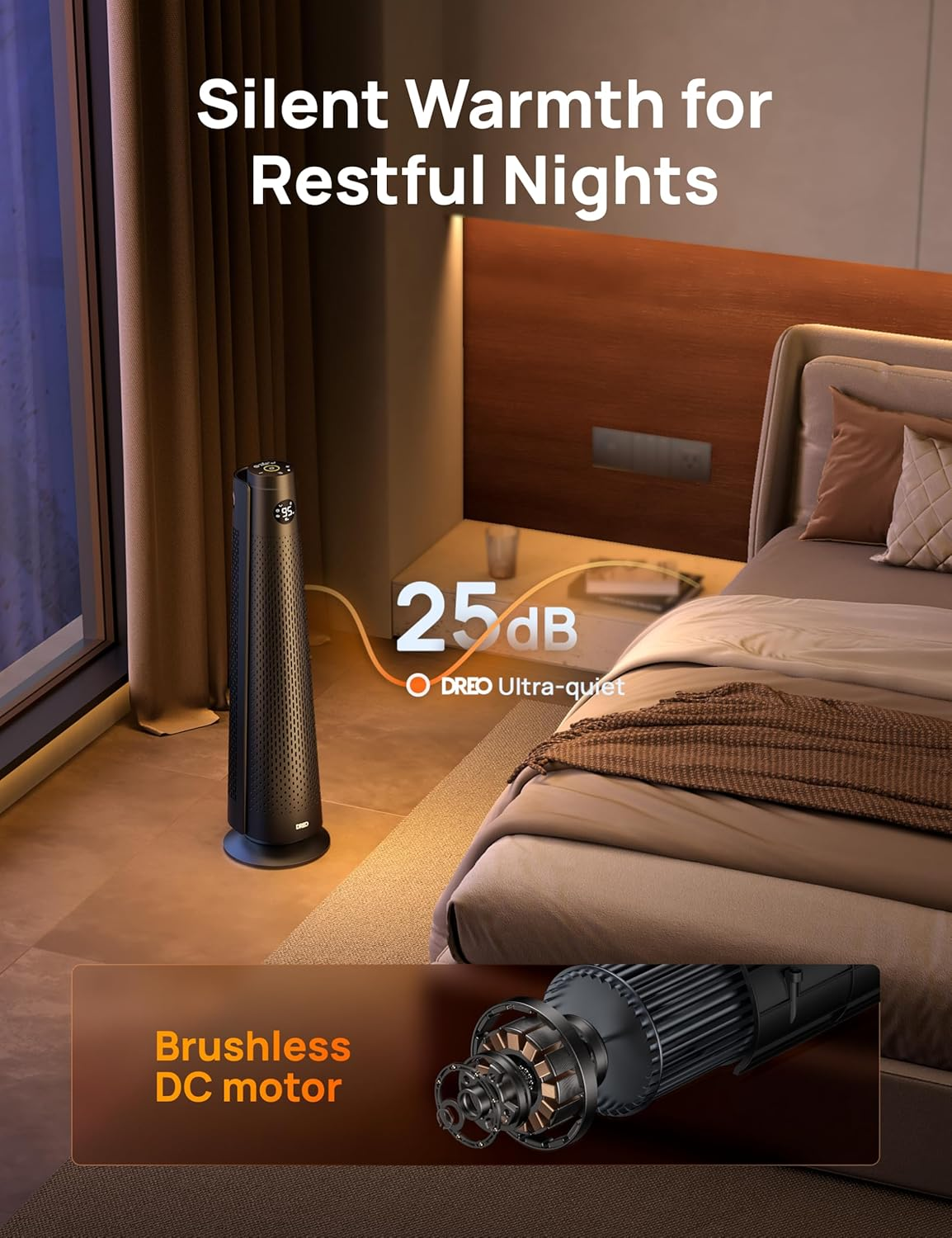 Powerful and Widespread Heating: Experience instant and efficient warmth with Dreo's 30" ceramic heater featuring a 308mm large PTC element, upgraded Hyperamics thermal design, and 30°-60°-90°-120° customizable oscillation, perfect for large rooms up to 300 ft². For optimal performance, please ensure a stable voltage environment in your home. All-around Safety: Stay warm this winter with peace of mind. Our heaters for indoor use offers 8 comprehensive protections, including V0 flame-retardant material, cool-touch housing, FortPlug, thermal insulated wiring, child lock, 45° tip-over protection and overheat protection, all certified by ETL. Heat the Way You Like: This electric space heater offers 9 comfort levels to suit your needs. Choose from 5 heat levels and ECO mode for optimal warmth, or switch to 3 fan levels to create air circulation. Precise Temperature Control: Powered by advanced controllable silicon technology, this energy-efficient space heater provides precise temperature control and up to 50% energy savings, bringing you all-day comfort without worrying about your electricity bills. 25 dB Extreme Quietness: Enjoy a warm, comfortable environment without disturbance. DREO's innovative airflow design reduces noise to an ultra-quiet 25 dB, making this heater for bedroom ideal for a peaceful night's sleep or a quiet, focused workspace. Product Description 1 Hyperamics Advantage 2 2s Warm-up 3 Far-reaching Comfort Dreo Portable Space Heater Family Add to Cart Add to Cart Add to Cart Add to Cart Add to Cart Add to Cart Add to Cart Customer Reviews 4.6 out of 5 stars 11,427 4.6 out of 5 stars 1,755 4.5 out of 5 stars 11,473 4.4 out of 5 stars 9,784 4.3 out of 5 stars 642 4.2 out of 5 stars 1,938 4.5 out of 5 stars 1,130 Price $39.98 $ 39 . 98 $59.99 $ 59 . 99 $67.49 $ 67 . 49 $89.99 $ 89 . 99 $129.99 $ 129 . 99 $99.99 $ 99 . 99 $99.99 $ 99 . 99 Height 10" 16" 16" 25" 30" 26" 16" Mode Options H1/H2/H3/ECO/Fan H1/H2/H3/ECO/Fan H1/H2/H3/ECO/Fan H1/H2/H3/ECO/Fan H1/H2/H3/H4/H5/ECO/F1/F2/F3 H1/H2/H3/ECO H1/H2/H3/ECO/Fan Adjustable Thermostat 41-95 °F (In 1°F Increments) 41-95 °F (In 1°F Increments) 41-95 °F (In 1°F Increments) 41-95 °F (In 1°F Increments) 41-95 °F (In 1°F Increments) 41-95 °F (In 1°F Increments) 41-95 °F (In 1°F Increments) Oscillation — 70° 70° 70° 30°-60°-90°-120° 360° Three-dimensional Heating 30° manual oscillation Sound Level 34 dB 34 dB 34 dB 37.5 dB 25 dB No noise 28dB Built-in Timer 1-12 H 1-12 H 1-12 H 1-12 H 1-12 H 1-24 H 1-24 H Remote Control ✔ ✔ ✔ ✔ ✔ ✔ ✔ ETL-Listed ✔ ✔ ✔ ✔ ✔ ✔ ✔ Power 1000-1500 Watts 1000-1500 Watts 700-1500 Watts 900-1500 Watts 300-1500 Watts 600-1500 Watts 900-1500 Watts