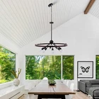 31.5" Black Wagon Wheel Chandelier 8-Light Country Round Metal Pendant Fixtures Details: Color: Black and rusty Full installation Dimensions: Dameter:31.5in, Height:47.2in Sockets: 8*E26 bulb sockets.(Bulbs not included). You can use CFLs and LED bulbs. But we recommend that you use less than 5W LED E26 bulbs, which can save energy, and life is long.(bulbs not included). Voltage: 110V-220V Materials: metal Applicable: living room, bedroom, restaurant, etc. Packaging details 1 * light pack in foam carton box.(Neen assembly) Suggestion: Installation By A PROFESSIONAL ELECTRICIAN Assistant after sales: For any question or installation methords about the light fixture,pls contact us via ebay message firstly for help. Payment Delivery details Terms of sales About us Contact us Payment You could make payment via: Delivery details Packages will ship via by UPS or USPS within our handling time,once the package is shipped out ,normally shipping takes about 3-10 working days,but due to different cities and states,shipping time will be different. Terms of sales If you any problem about shipping information, or the item you got : Arrived damaged; Wrong item sent; Missing parts or pieces; Doesn't work or defective; Doesn't match description or photos. Pls click "Contact Seller" and send us message firstly. Then we could have a check and will take responsibility to resolve the problem with you in good communication. About us Our company specializing in selling all kinds of light fixtures,such as ceiling fans,chandeliers,crystal lights,retro lamps,pendant light,etc. If there's any light fixture you are interested,pls feel free to contact us for more details. Contact us Normally your message will be replied in 1 business day,If after 24 hours you do not receive our reply,please kindly re-send us the message,because sometimes ebay message system will have technical problem,so your message can't send to us successfully.