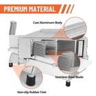 Razor-Sharp Blades The pre-tensioned cartridge blade set is made of food-grade stainless steel, which is sharp and durable. It can cut tomatoes into 3/16-inch thick slices within one minute. Ergonomic Handle The vertical push handle is ergonomically designed to easily cut large quantities of tomatoes. Another handle on the top makes it easy to lift and carry. Stable Rubber Feet With four rubber feet, you can ensure that the tomato slicer is firmly fixed in place during use. The rubber material can prevent slipping and scratching on the work surface. About this item Commercial Tomato Slicer: 3/16" Tomato Cutter Vegetable Slicer, Stainless Steel Tomato Cutter With Built-In Cutting Board for Restaurant or Home Use Sharp Stainless Steel Blades: The tomato cutter slicer adopts specially-designed food-grade stainless steel cartridge blade set, enabling 2 dozen tomatoes to be cut into uniform 3/16-inch thick slices, in one minute. Vertical & Horizontal Handles: One ergonomic vertical handle and one horizontal handle are equipped, which can help you to apply force to the commercial slicer for effortless slicing. Safety & Stability: The protective guards keep your hands safe during operation. Four rubber feet effectively prevent slipping of tomato slicer commercial, to ensure maximum stability. Multi-Functional Slicer for Vegetables & Fruits: This multi-functional tomato slicer is ideal for slicing tomatoes, onions, garlic, cucumbers, strawberries, mushrooms, and other vegetables and fruits. Specifications: Item Dimensions: 15.4 x 7.1 x 7.9 inches Item Weight: 7.87 Pounds Installation Type: Free Standing Color: Silver Power Source: Manual Blade Material: Stainless Steel Material: Cast Aluminum Package Content: 1 x Commercial Tomato Slicer Notes: Please be aware that PO Box cannot receive items,please DO NOT fill in the PO Box address.