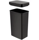 The 13.2 Gallon Plastic Motion Sensor Kitchen Trash Can is perfect for large families or busy environments. The touchless operation allows for improved cleanliness and hygiene, this trash can operates with hands-free motion sensing technology. Simply wave your hand above the sensor at the front of the lid to open it automatically. The creative lighting system counts down to the soft close of the lid for a quiet user experience. Perfectly sized to accommodate any standard 13-gallon trash can liner, this durable plastic resin garbage can also features soft touch buttons for manual operation. The rectangular design and all black finish makes this the ideal garbage can for use in the kitchen, office, laundry room or any other area of the house where you need the convenience of a touchless trash disposal. Motion Sensor Technology: Touch-less motion sensor trash disposal Hands-Free Operation: Uses 4 AA alkaline batteries (not included) Built-In Bag Fixer: Helps secure the trash bag in place Air Vent On Back: Allows easier removal of full trash bags Soft Open & Close: No flying open or slamming shut Manual Option: Soft touch buttons allow user to operate the product manually when desired No Special Orders: Uses standard 13G kitchen trash bags Why You'll Love It: Hands-free convenience at a fantastic price
