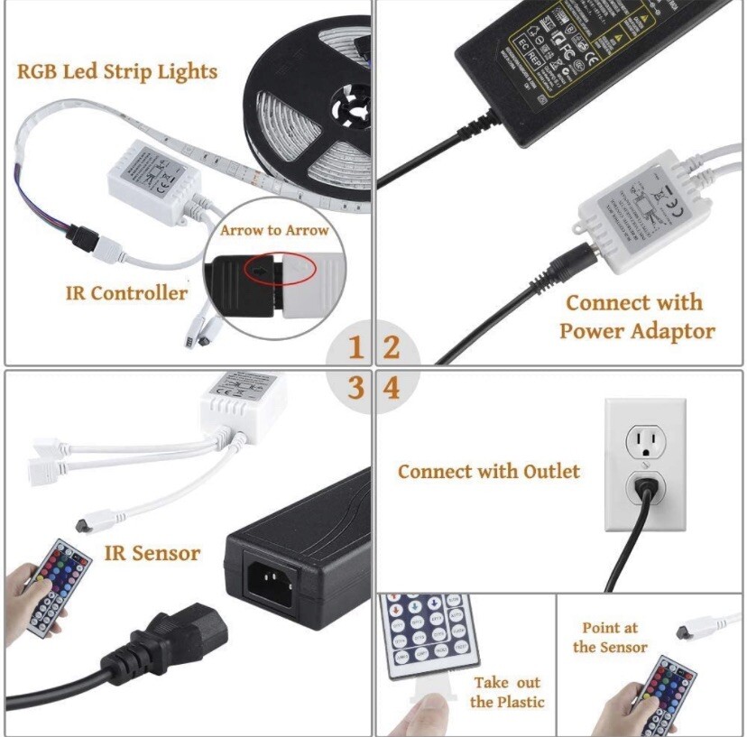 Color Changing: This RGB Led strip lights kit can change colors and speed automatically and periodically. Led Strip Lights with 44 Key IR Remote Controller, provide RGB (red, green, blue), and also 16 multicolored options to DIY your favorite color to decorate your room. Premium LED Strips: Led strip lighting has 300 premium 5050 SMD Leds in 32.8ft with dimmer and brightness controls. The light strip is non-waterproof, which is designed to be used indoor. Superior & Safe Material: Using double layer copper on PCB board to keep the mixed colors more even. Led IR remote controller has over charging, short circuit protection and memory function. Power Supply is under safe value for adults and kids. Easy Installation and Use: Led tape lights is cuttable between every 3 leds. You can cut off extra strips to adjust to a proper length. 3M self-adhesive tape can be fit on any dry and flat surface. Flexible to install anywhere you want.