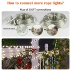 🌟Flexible and Connectable Design: Our LED rope lights are crafted with a high-quality clean tube that ensures the safety of the fairy lights and allows effortless bending into various shapes, enabling easy recycling for future use. The end-to-end connectable feature enables you to connect up to 3 sets, resulting in an impressive total length of 300ft. With this extensive coverage, you have the freedom to fulfill all your creative lighting decor needs. 🌟8 Lighting Modes & 10 Adjustable Brightness & Safe: Experience a diverse range of lighting options with 8 different modes, including Combination, In waves, Sequential, Slo-glo, Chasing Flash, Slow fade, Twinkle Flash, and Steady on. Conveniently switch between modes using the plug's button to create the perfect ambiance for any occasion. 10 Adjustable Brightness is from 10%-100%. Safety is our priority, as evidenced by the two built-in fuses in the power plug, providing short circuit protection, making these lights highly reliable and reassuring. 🌟Auto Timer & Memory Function: Embrace energy efficiency and convenience with the rope lights timer function. Set them to stay on for 5 - 60 minutes and automatically turns off, saving energy and your time. 🌟Durable and Waterproof Construction: Designed for outdoor use, our LED rope lights are encased in a transparent and thick round PVC tube, ensuring 360 full illuminating and strong resistance to heat. This durable construction allows the lights to withstand various weather conditions with ease. With an IP65 waterproof rating, they are suitable for both indoor and outdoor decorations. 🌟Versatile Usage: Our LED rope lights are not only perfect for enhancing Christmas decorations, party decor, and weddings but also ideal for daily and holiday use. Illuminate cabinets, bedrooms, ceilings, walls, and utilize them as captivating background lighting. Create a delightful holiday atmosphere in your daily life by wrapping them along the pool deck, awning, or any desired location.