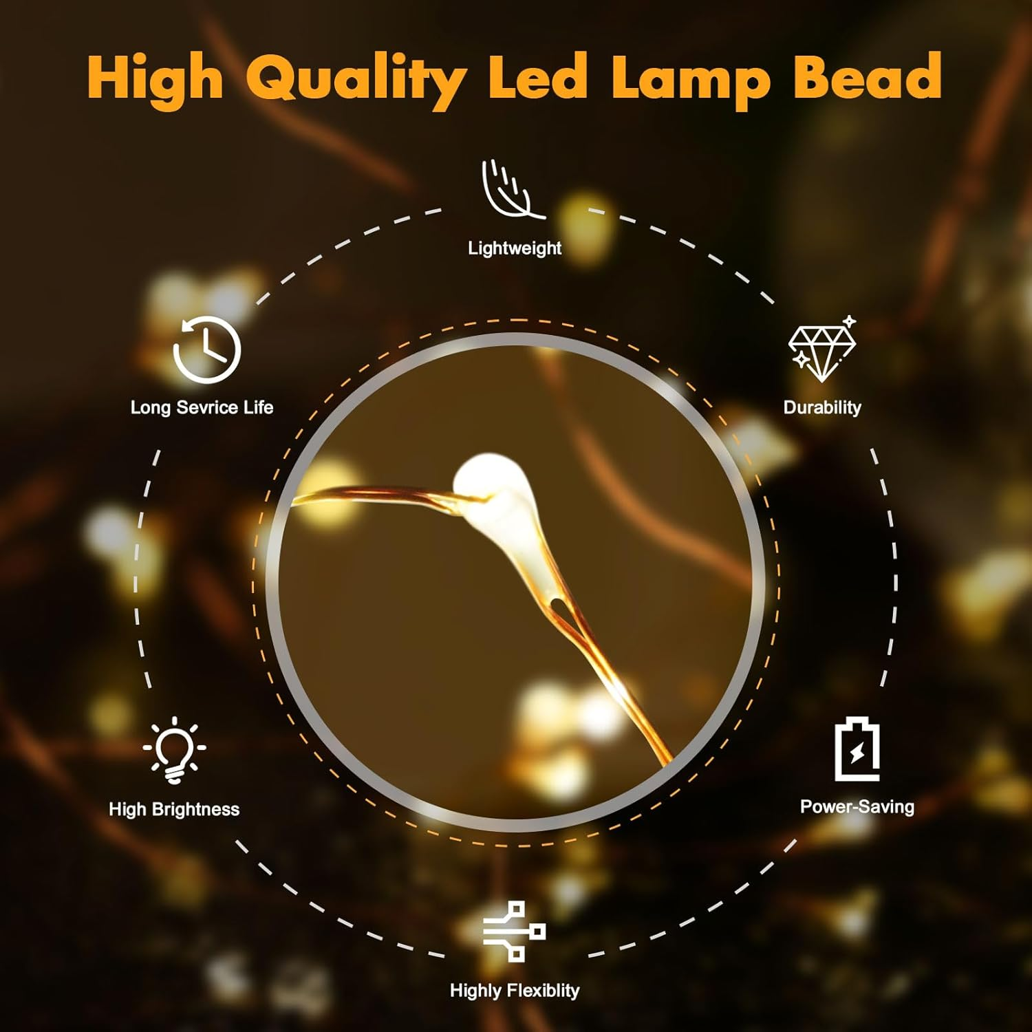 Flexible Copper Wire Fairy Lights: The 33Ft 100 LED Warm White Fairy Lights are designed with flexible copper wires that allow for creative and versatile decoration. You can easily twist and shape the lights to wrap around plants, staircases, furniture, or even drape them along walls and mirrors. This adaptability makes them perfect for any occasion or setting, allowing you to express your unique style and creativity. Safe and Energy Efficient: Operating on a low voltage of 4.5V, these fairy lights are not only energy-efficient but also safe to touch, even after prolonged use. They are designed to prevent overheating, ensuring a safe environment for children and pets. With no need for batteries, simply plug them in and enjoy the warm, inviting glow they provide for both indoor and outdoor spaces. Convenient Storage and Use: The lights come neatly coiled on a specially designed winding reel, preventing tangles and making storage easy when not in use. An ON/OFF switch is included for convenient operation, particularly useful for setting the mood in bedrooms or during gatherings. Durable Indoor and Outdoor Use: Crafted from waterproof copper wire, these lights are built to withstand various weather conditions, making them ideal for outdoor decorations. They can enhance the ambiance of your garden, patio, or backyard while also being suitable for indoor spaces, adding a touch of elegance to your home. Customer Support: We are committed to your satisfaction. If you have any questions or concerns regarding the product, our dedicated team is available to provide solutions within 24 hours. Please note that while the copper wires and LEDs are waterproof, the transformer is not designed for outdoor use. Product Description Transform your living space with the enchanting glow of our 33Ft 100 LED Warm White Fairy Lights. These versatile lights are perfect for creating a magical atmosphere, whether for everyday decor or special occasions. The flexible copper wire allows you to shape the lights in countless ways, making them ideal for wrapping around plants, decorating staircases, or enhancing your festive events. Designed with safety in mind, these LED string lights operate at a low voltage, ensuring they remain cool to the touch and safe for use around children and pets. The waterproof copper wire makes them suitable for outdoor use, allowing you to illuminate your garden, patio, or backyard with ease. Elevate your home decor and create unforgettable memories with these stunning fairy lights. Best Features Flexible and customizable copper wire for easy shaping and wrapping. Safe to touch with low voltage operation, preventing overheating. Convenient storage with a specially designed winding reel. Durable and waterproof construction for both indoor and outdoor use. Responsive customer support available for any inquiries or concerns.