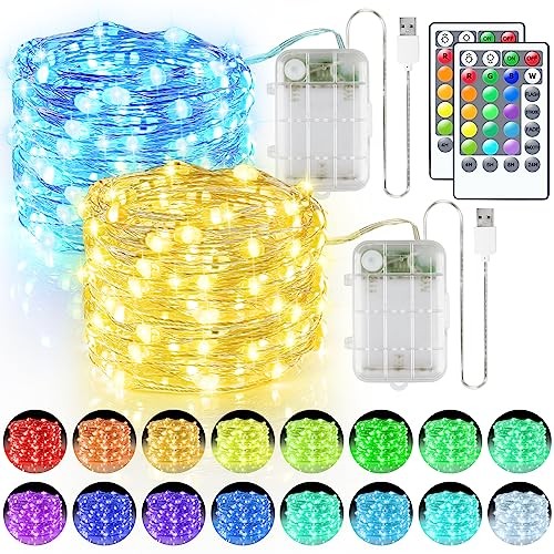 2 Pack Fairy Lights Battery Operated, Total 200 LED 66ft 2 Pack 100LED White