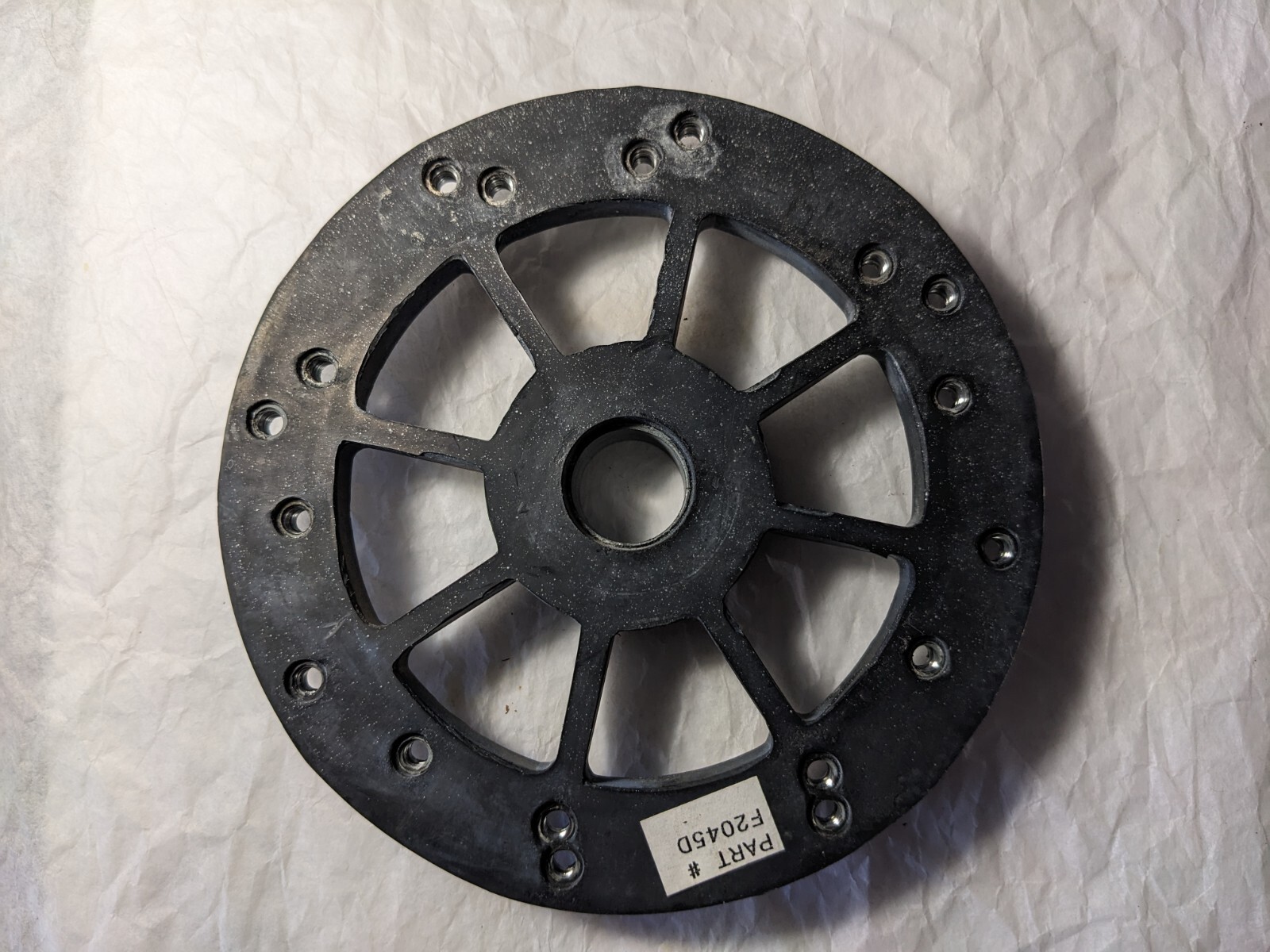 Ceiling Fan Flywheel 3/4" for 4/5 Blade Riccar, Jetking, Tacony & Gulf Coast Fans. New old stock. 2 /16" & 1 3/4" blade arm mounting holes. 5 9/16" diameter. 10 24 blade arm screw holes.