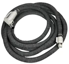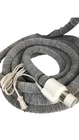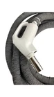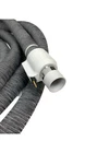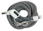 35 Foot Electric Central Vacuum Hose Fits most models that use button lock metal wands. The hose handle end is a round, metal tube and handle is ergonomically designed for maximum comfort. Hose is kink and crush resistant and hose handle swivels 360 degrees. This hose has a three position on/off switch on the hose handle. 1.) off 2.) power unit on only 3.) power unit on and electric powered brush on. The hose can work with 7 foot pigtail cord that plugs into a nearby electrical outlet or two small pins on the hose end that plugs into the wall. The hose contains both the high voltage (120v) for use with an electric powered brush and the low voltage (24v) used to turn the central vacuum on and off. Both sets of wires are molded into the hose. Hose ships with hose sock cover already put on hose. T he hose cover is a tight fit on the hose so it does not slip down easily with plastic pull clamps to help secure the hose on both ends. Hose cover protects furniture, baseboards, and walls and is kink resistant. Hose works with industry standard 1.5 inch central vacuum inlets. Hose covered with 1 year manufacturer warranty.