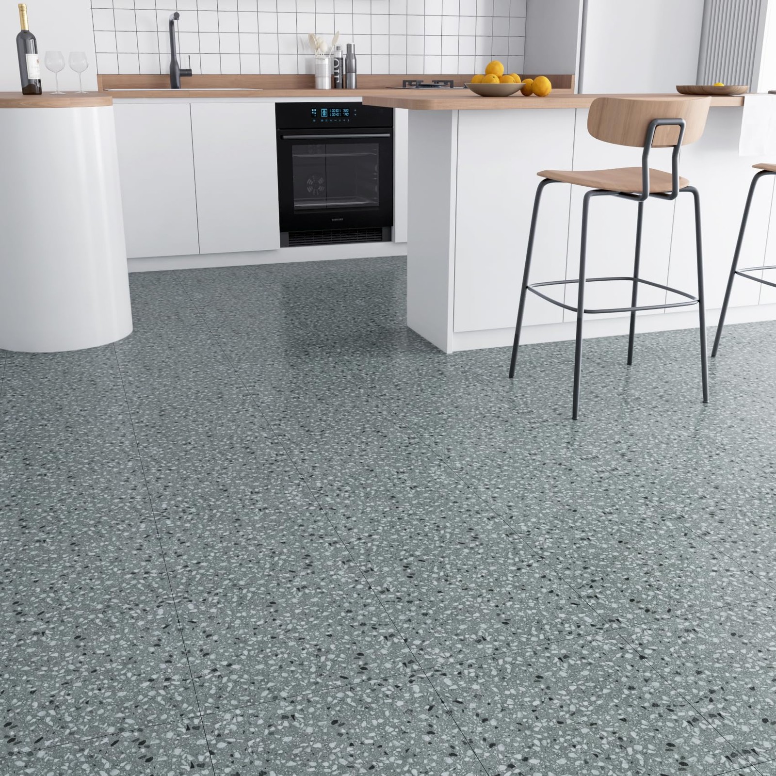 [SIZE] Length: 12 inch; Width: 12 inch [THICKNESS] 0.057 inch [MATERIAL] Vinyl Floor Tiles [COLOR] Black White Grey Peel and Stick Floor Tile [STYLE] Terrazzo Peel and Stick Floor Tile [DESIGN CONCEPT] Natural terrazzo look brings timeless charming for your floor! [ADVANTAGES] 1. Terrazzo Peel and Stick Floor Tile Waterproof: peel and stick floor tile, self adhesive floor tiles, no extra glue needed. 2. Terrazzo Peel and Stick Floor Tile Waterproof: removable floor tiles without sticky residue, great temporary flooring for renters. 3. Terrazzo Peel and Stick Floor Tile Waterproof: 12 x 12 peel and stick floor tile, vinyl floor tiles, vinyl laminate flooring, linoleum flooring. 4. Terrazzo Peel and Stick Floor Tile Waterproof: Waterproof flooring, stain resistant, moisture-proof, anti-slip, easy to clean. 5. Terrazzo Peel and Stick Floor Tile Waterproof: This peel and stick tile floor can be used as bathroom floor tile, shower floor tile, kitchen floor tile, it also can stick on bedroom floor tiles, living room floor tiles, this sticky floor tiles are suitable for dinning room, laundry, nursery, dollhouse, playroom, cubicle, farmhouse, garage, basement, attic, kitchenette, gym, dorm, classroom, apartment, office and rv flooring. [PRO TIPS] 1. Measure the size of the floor surface before purchase, buy enough rolls at one time to avoid color difference. 2. Clean the surface before pasting. The adhesion will be the best if the surface is clean, smooth, dry and flat. 3. We recommend to avoid leaving too much water on the floor tiles while cleaning within two days after installation, which helps to maintain great adhesion for a long time. ➤ SIZE & MATERIAL: Each terrazzo floor tile measures 12"x12" and 0.057" thick. 36 tiles per box, totally can cover 36 square feet. The sticky floor tiles are made of superior vinyl, wear resistant and nonflammable, safe for your family. ➤ EASY TO INSTALL: Self adhesive vinyl floor tiles, just peel and stick floor tiles to your room, readjust if you need, cut with utility knife or scissors to fit small space, no grout or special tools needed. ➤ EASY TO CLEAN: This grey terrazzo peel and stick floor tile is waterproof and washable, oil proof and stain resistant, easy to clean with a wet mop. ➤ REMOVABLE: Just remove the vinyl flooring tiles if you want. It's perfect removable floor tiles and temporary flooring for renters! ➤ MULTI-USE: Stick on floor tiles to any dry, clean and flat floor, such as for bathroom flooring, kitchen flooring, rv flooring, bedroom, living room, laundry room, dining room, basement, entryway, foyers, gym, garage, office, apartment, classroom, etc. ➤ 24/7 SERVICES: Any questions about peel and stick floor tiles, please feel free to contact us or "Ask a Question". Get the gray terrazzo tiles for floor, and start to enjoy your DIY time!