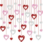 cardstock PACKING INCLUDE – 18 Pcs big hollow hearts and 18 pcs small solid hears with 3 colors: red, pink & silver, 36 pcs in total. Each glitter heart swirl is double side printed, whether viewed from the front or the back, they are the perfect hanging decoration for Valentines day party decorations. JUST HANG IT – We have pre-assembled as all the pieces for you. No need assemble, with attached red ribbon, hang from the ceiling as part of your Valentines party decorations. Get your home ready to celebrate the holiday! THEMED DESIGN – 3 Colors with 2 sizes & 2 different styles design: hollow heart and solid heart. It's perfect for decorating your dessert table, living room, themed party, school event, class, office, girl's birthday party and so on. STURDY & REUSABLE – Made of high quality card stock ,thick and sturdy, double-sided glitter PVC, can be reused. Elegant and themed Valentines heart pattern design will not outdated, will make your home full of romantic atmosphere! PERFECT FOR VALENTINE – Great additions to celebrate your Valentines day party, transform any room or venue into a celebration of holiday with these pretty glitter heart hanging swirls, add more festive to your party. Product Description VALENTINES DAY GLITTER HEART HANGING ORNAMENTS - 3 Colors: red pink silver(white) - 2 Styles & 2 Sizes: hollow & solid hearts, 5.9" & 3.15" - Made of card stock, thick and sturdy, double-sided glitter PVC. - Suitable for various occasions: such as Valentines day party, birthday, engagement, wedding etc. LET'S GO PARTY ALL NIGHT! BEAUTIFUL PARTY DECORATIONS Double-sided glitter PVC Sparkling home decoration Suitable for any place: wall, window, door, stair railings, corridor and so on FOR HOLIDAY DECOR FOR HOME DECOR FOR BIRTHDAY PARTY