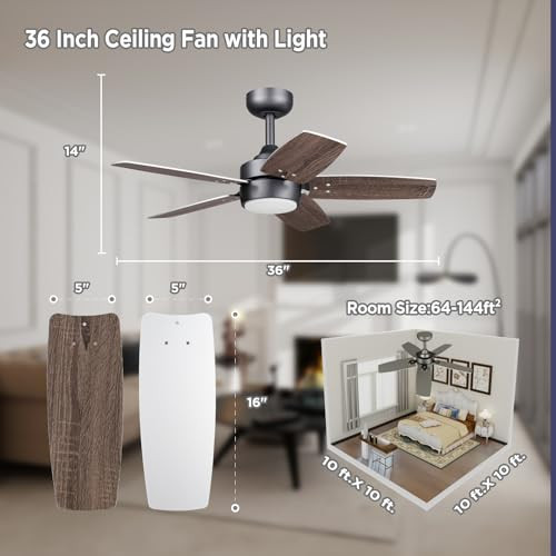 Return Policy Fast Delivery Trusted seller Ceiling Fan 36'' for Small Room: Modern Ceiling Fans with Light Remote Control - Reversible Quiet DC Motor Dimmable with 6 Speeds for Dorm Room Kids Bedroom(Bronze+Walnut) Product Description 36 Inch Downrod Mounted Ceiling Fan: This small modern ceiling fan is equiped with 6 inch short rod, 10 inch long rod and dual color blades, especially designed for small rooms like apartments kids' bedroom, allowing you to experience constant cooling and quiet in a small space.Very easy to install ,No electrician fee needed. Small Ceiling fan for Kids Room Small Bedroom: The suitable occasions of this indoor ceiling fan is kids room,small bedroom,dorm room,study room,game room,office,etc small rooms.When it comes to applicable room area,we recommend a room size between 10 ft * 10ft to 15ft * 15ft,so that you can experience huge air volume and unparalleled quietness.Besides, this is also a outdoor ceiling fan for patio, breezeways, gazebos, pergolas and other outdoor spaces. (Not to be exposed directly to rain) Silent Reversible Ceiling Fan: In the summer, the forward mode allows air to flow downward while the ceiling fan has a good airflow of over 3500 high CFM to keep you cool and less than 30 decibels of sound for a comfortable sleeping environment. In the winter, the reverse mode allows air to flow upward so that the warm air produced by the room's heating equipment is evenly distributed throughout the room. You can keep the ceiling fan working, enjoying coolness and warmth all year round. Dimmable LED Light: The ceiling fan uses a replaceable LED light.source.Compared with ordinary light sources, LED light sources are more energy-efficient,brighter (1800LM), and have a longer lifespan. T are 3 color temperatures to choose from (3000K warm light/4000K natural light/6500K cool white light). Adjustable brightness (0%~100%). When you are partying, watching TV or sleeping, you can use different color temperatures and brightness. Light memory function: The light of this elegant interior ceiling fan has a memory function, so you can get rid of the trouble of adjusting the brightness and color temperature every time, and immerse yourself in the joy of dinner time and watching TV.Three light color temperature, forward and reverse, six speed wind, timer(1h/4h), dimmer, all functions can be set by one button. The remote control comes with a mounting bracket for mounting on the wall. Shipping Returns Payment Shipping Shipping is FREE to all addresses other than APO/PO boxes in the lower 48 states. All our stock ships from US-based warehouses. Shipped via USPS or UPS (depending on location and package weight) Unless stated otherwise, all orders will ship within 24-72 hours of your payment being processed. Check our feedback to see the great reviews of FAST shipping we offer. Returns Seller does not accept returns Payment We currently accept payment via eBay managed payments only. Once payment is cleared, we will dispatch your shipment within 1-3 business days. Please refer to the "Shipping" tab for more information regarding shipping speed to your destination.