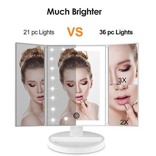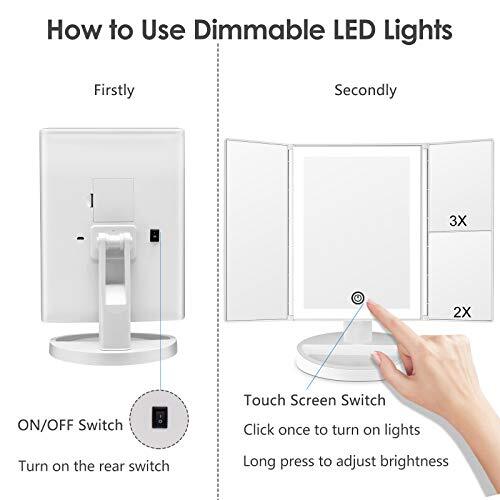 This makeup mirror is a game-changer! The 36 dimmable LEDs give perfect, natural lighting for flawless application, and the dual power options make it super versatile. Love the 2X/3X magnification for detailed work—portable yet sturdy. The cool white light mimics daylight, so my makeup always looks on point. Definitely worth it!