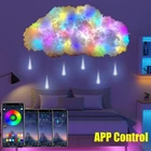 3.93Ft/1.2M Big Cloud Rain Lightning Kit ⛈Package Included and Size: This Big Felt Cotton Rain Cloud lightning Light has a perfect size L:3.93Ft/1.2M.W:60 CM 1PCS Felt Cotton Cloud lightning Light+USB with APP controll+360 Degree Wireless 2.4G Music remote controller , 6PCS Raindrop lights+ 6PCS Wall buckle. 🌈Multi COLOR CHANGING SYNC WITH MUSIC-Big Felt Cotton Cloud lightning Light colorful and durable, Can simulate lightning clouds.the brightness of the lights can be adjusted and offer millions different colors.Bluetooth strip light Music has a smart music mode, built-in sensitivity adjustable microphone, you can choose any music to beat with it, then color will changing accordingly. If thunder is played at the same time, it will bring out a cooler cloud lightning effect. 🌧Raindrop Lights-The exclusive latest design simulates the falling process of raindrops, making the lamp more vivid and more dynamic. 🎶Widly Use:This Cloud lights not only can you install it to your Child's bedroom, you can also install it to the your bedroom, kitchen,display, etc.It can also be used on IG, YouTube, Facebook, Tik tok videos, this will be the coolest background.Power by USB,can be used any devices with 5V adapter.Such as USB socket ,USB connector,Power bank. ⚡Easy to Use and Install:It is easy to Install, just choose a wall you want to decorate.Select a wall you want to decorate, first measure the position of the cloud and raindrop light strip, then tear off the glue on the back of the cloud and raindrop light strip, and paste it according to the size you measured.