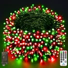 LED Super Long Christmas Lights: 1000 LED Christmas decorations length is 394 ft, and the lead wire length is about 10 ft; Outdoor decoration in the green line and greenery perfect blend more beautiful High Quality Outdoor Christmas Lights: LED string lights feature thick ABS and PVC material, which will not rust under harsh conditions. The high quality material prevents them from tangling or breaking Multifunctional LED String Lights: 8 lighting modes function; Three timer modes: 6 hours on, 18 hours off/8 hours on, 16 hours off/6 hours on, 6 hours off, 3 hours on, 9 hours off; Memory: No need to reset last time setting; 4 level brightness adjustment:25%-50%-75%-100% to meet your need Waterproof & Safe: String lights with IP44 waterproof design offer more decorative options (Note: Please keep the power plug dry); 29V low voltage plug, safe to touch What You Get: 1 x LED Christmas Tree Light; 1 x Plug in; 1 x Remote Control