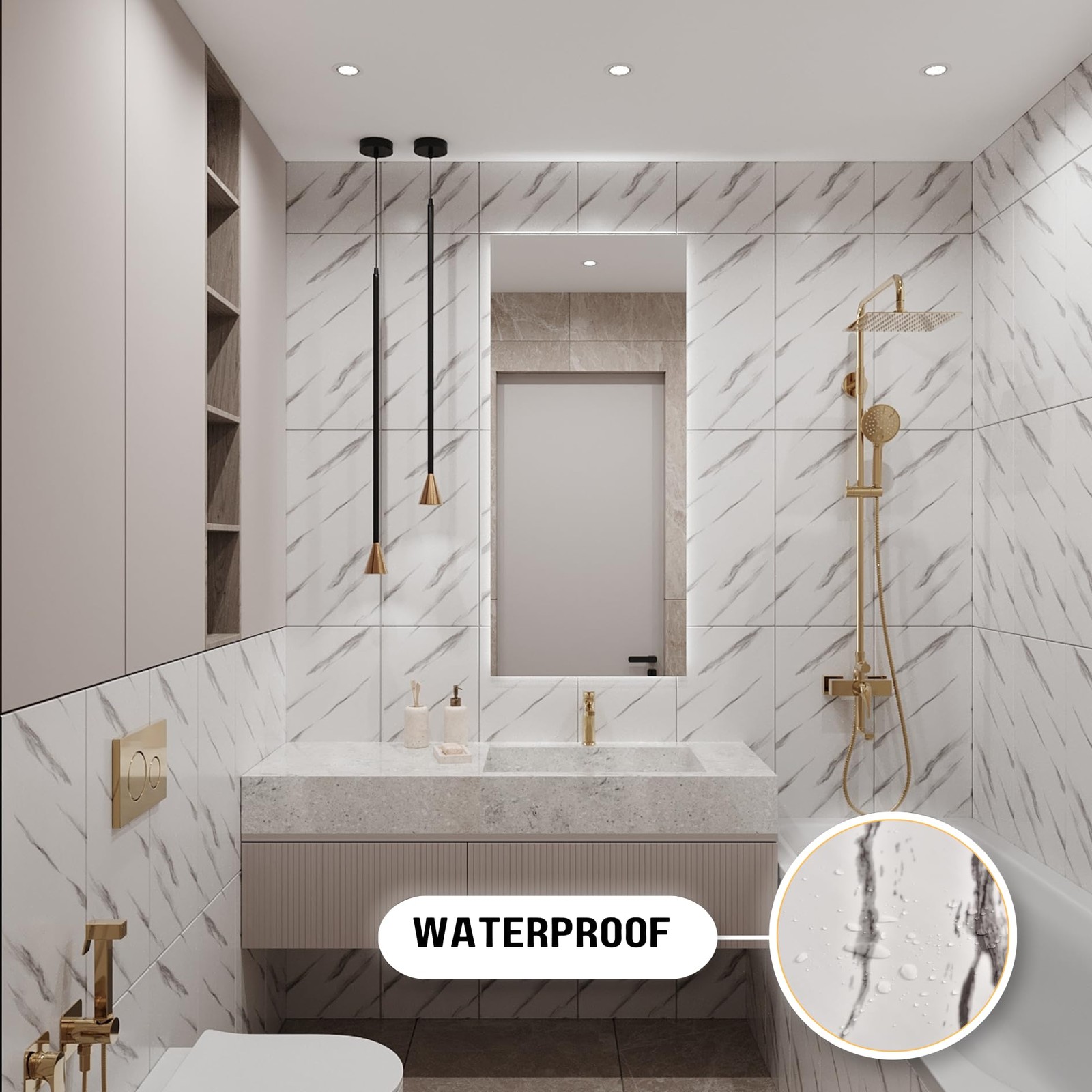 Effortless Elegance with Marble Peel and Stick Wall Panels Upgrade your space instantly with our 3D Marble Peel and Stick Wall Panels, the easiest way to achieve a sleek, modern look without the cost or hassle of real marble. Whether you’re enhancing your kitchen backsplash, shower walls, bathroom, living room, or even flooring, these lightweight, easy-to-install panels deliver a refined, high-end aesthetic in minutes. Each panel measures 24x12 inches (60x30.5 cm), allowing you to cover large areas quickly while maintaining a seamless, polished appearance. Designed to mimic the beauty of genuine marble, these panels offer a stunning 3D effect, adding depth and sophistication to any room. The best part? You get the elegant look of marble at a fraction of the cost, making this a smart, stylish solution for any home improvement project. Crafted from high-quality, durable vinyl, our panels are waterproof, stain-resistant, and easy to maintain—perfect for moisture-prone areas like bathrooms and kitchens. While they don’t have the weight or thickness of real stone, they provide a similar visual impact, creating a sleek, contemporary upgrade without the need for heavy materials or professional installation. For added durability in wet areas, we recommend sealing the edges with a waterproof sealant. Installation is quick and hassle-free—simply peel, stick, and admire. These panels adhere securely to clean, dry, and smooth surfaces, making them an ideal DIY-friendly solution. Whether you're revamping a backsplash, accent wall, or flooring, you can achieve a luxurious new look in just minutes. (For best results, avoid applying on rough, oily, or uneven surfaces.) If you’re looking for an affordable way to bring timeless marble elegance into your home, our 3D Marble Peel and Stick Wall Panels are the perfect choice. Easy to install, beautiful to look at, and designed to make a statement—your home transformation starts here. Affordable Marble Look for Any Space: Get the high-end appearance of marble—without the weight, cost, or hassle of real stone! Our peel and stick marble wall panels are a lightweight, budget-friendly alternative designed to replicate the sleek and stylish look of marble at a fraction of the price. Each panel measures 24x12 inches (60x30.5 cm) and is perfect for bathrooms, showers, kitchens, living rooms, and accent walls. Thin, Flexible & Easy to Work With: Unlike real marble or heavy wall panels, these thin, flexible panels are easy to cut and install, making them perfect for quick home upgrades. While they don’t have the thickness or weight of solid stone, they deliver a similar visual effect, allowing you to transform your space without complex installation or high costs. Waterproof & Practical for Everyday Use: Made from moisture-resistant materials, these panels are waterproof and stain-resistant, making them a great choice for bathrooms, showers, and kitchen backsplashes. While they mimic the look of marble, they offer a practical, low-maintenance alternative that won’t absorb water or require sealing like real stone. For extra durability in wet areas, we recommend sealing the edges. Effortless DIY Installation: Skip expensive labor and complicated tools! These self-adhesive panels stick securely to clean, dry, and even surfaces, making installation quick and hassle-free. Whether you're updating a backsplash, bathroom wall, or decorative feature, you can achieve a stylish upgrade in minutes. (Avoid applying on rough, oily, or uneven surfaces for the best results.) A Smart & Budget-Friendly Choice: If you love the look of marble but need a more affordable, lightweight option, these thin peel and stick panels are the ideal solution. Whether you’re working on a small home update or a larger decorative project, this is the easiest way to achieve a modern, stylish look—without the cost or effort of real stone.