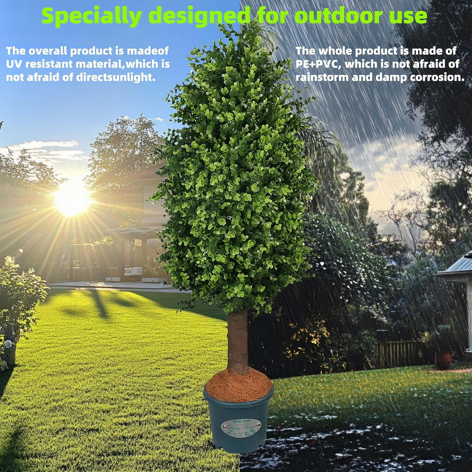 This 3ft boxwood tree looks incredibly real—no one can tell it's fake! The UV-resistant material keeps it from fading outdoors, and the sturdy pot gives it a polished look. Perfect for sprucing up my porch without any maintenance. Love how lifelike and lush it stays all year!